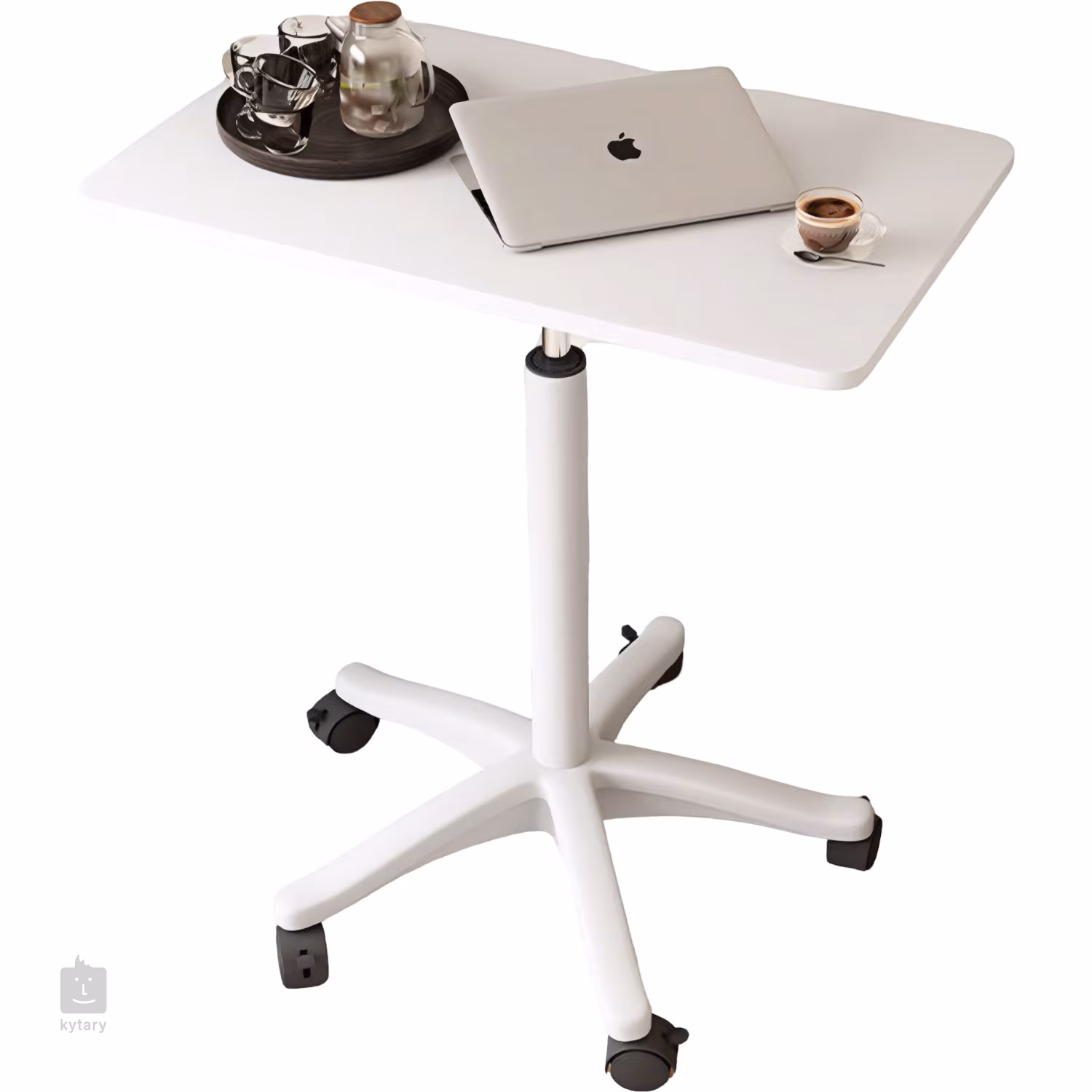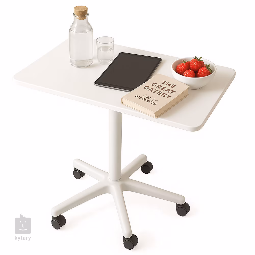 Az asztal kiváló minőségű acélszerkezetből és tartós MDF-anyagból készült, ami garantálja a stabilitást és a tartósságot. A négy görgőnek köszönhetően könnyen mozgatható egyik helyről a másikra, amit otthon és az irodában is értékelni fog. Az elegáns kivitelű kivitel a modern enteriőrökhöz illik, és hangsúlyozza sokoldalú felhasználhatóságát.