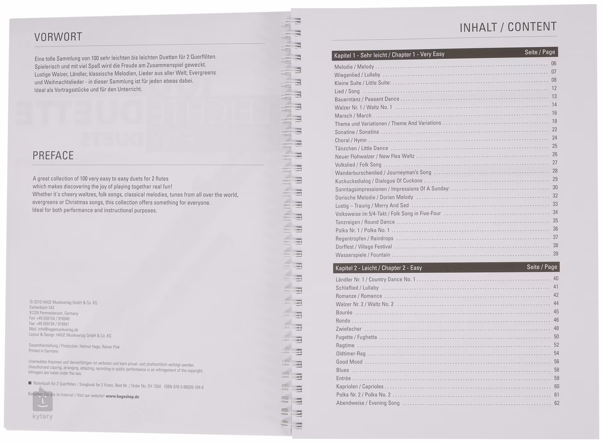 Ez a kiadvány 100 duettből álló válogatást tartalmaz két fuvolára könnyed hangszerelésben. Keringők, népdalok, klasszikus zenei művek dallamai, örökzöldek a világ minden tájáról és karácsonyi dalok/karácsonyi énekek - mindenki számára van valami. A darabok feldolgozásai alkalmasak a tanórák gazdagítására és előadásra.