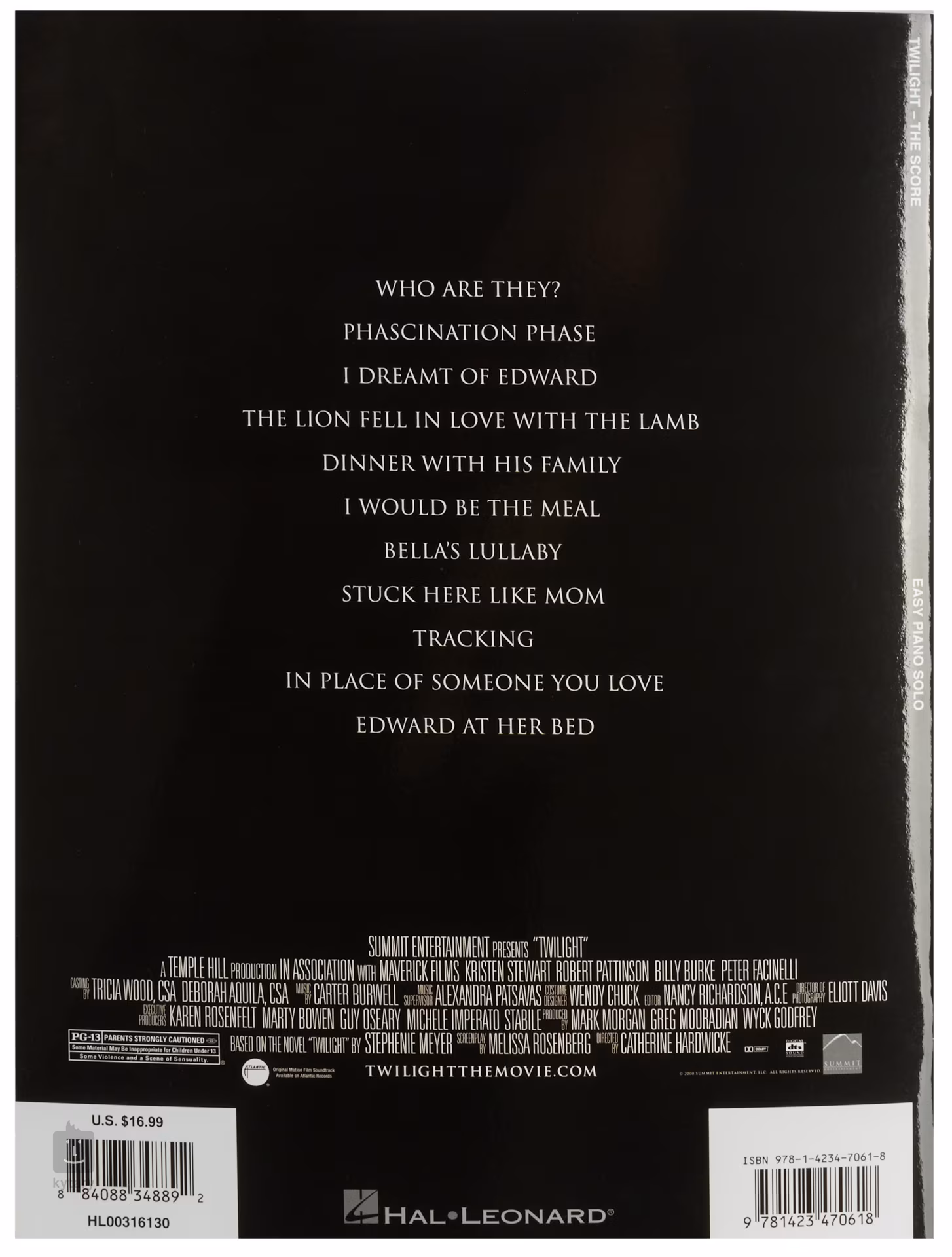 Ez a könyv számos zongorára felvett darabot tartalmaz. Ezek a dalok az Alkonyat című sikerfilmből valók.