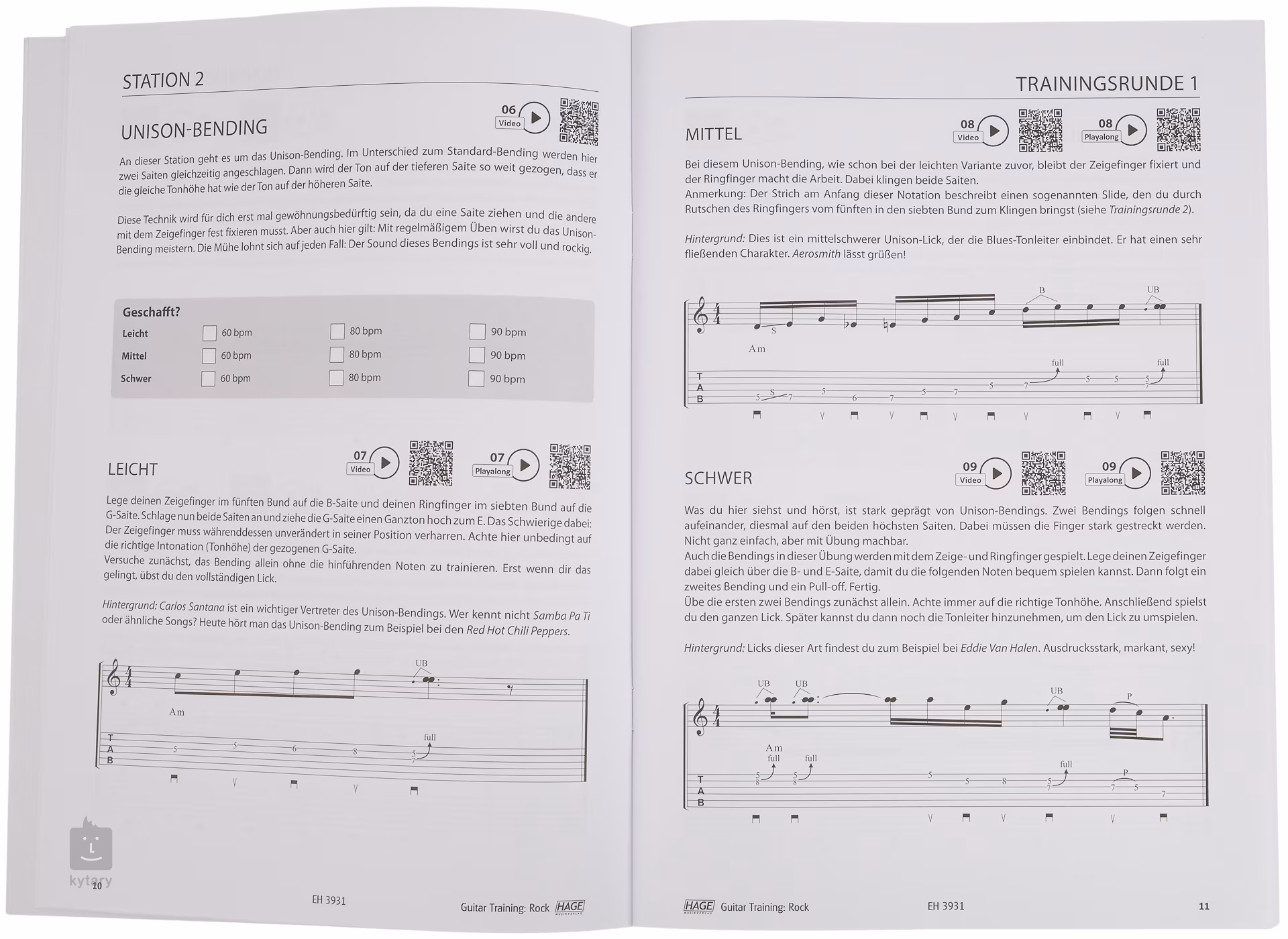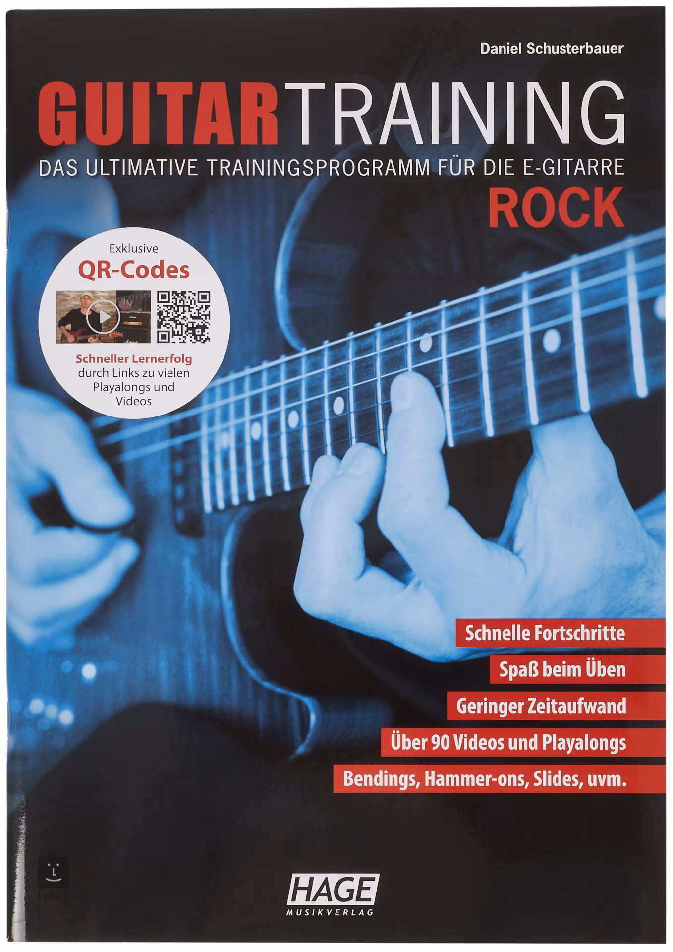 A Guitar Training Rock minden olyan rockgitárosnak szól, aki a játéktechnikáján szeretne dolgozni. Gyakorlatokat kínál a bal és jobb kéz technikájának gyakorlására, azaz hajlítás, slide, hammer-on, pull-off, legato és alternate picking, inside picking, sweep picking és hybrid picking. A gyakorlatok három különböző nehézségi szintet kínálnak, ahol könnyen nyomon követheti a fejlődését. Minden gyakorlat egy-egy nyalásból vagy riffből áll, amely híres gitárosok - Angus Youngtól Zakk Wylde-ig - bemutatott technikáján alapul. Mindössze öt perc naponta, és gyorsan látni fogja a különbséget.