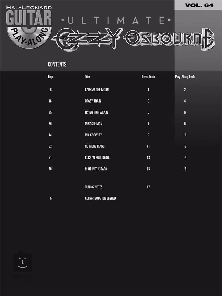 Tanuld meg Ozzy Osbourne híres dalait gyorsan és könnyen eljátszani az Ozzy Osbourne Guitar Play-Along Series segítségével. Az olyan halhatatlan himnuszok, mint a No More Tears, a Mr. Crowley és a Crazy Train gitár tabulatúrában vannak rögzítve, és a dalszövegeket dallamvonal-énekléssel kísérve kottában.