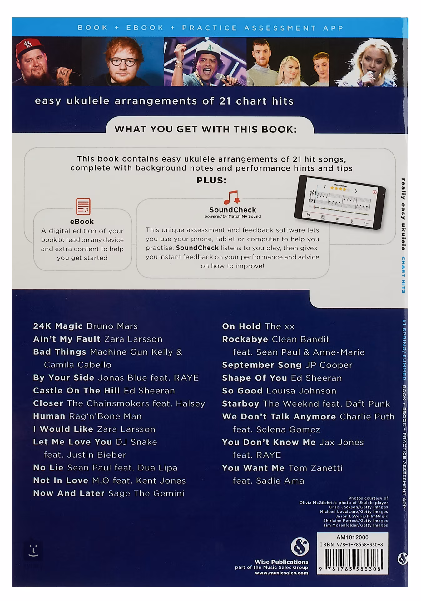 Huszonegy aktuális népszerű sláger (2017 tavasz/nyár) gyűjteménye egyszerűsített feldolgozásban ukulelére. A kiadvány tartalmaz egy e-könyvet, a kiadvány digitális változatát, amely szinte bármilyen eszközön megnyitható, valamint a SoundCheck mobilalkalmazást. Ez a technológia reagál az Ön játékára, és azonnali visszajelzést és tanácsokat ad a javuláshoz.