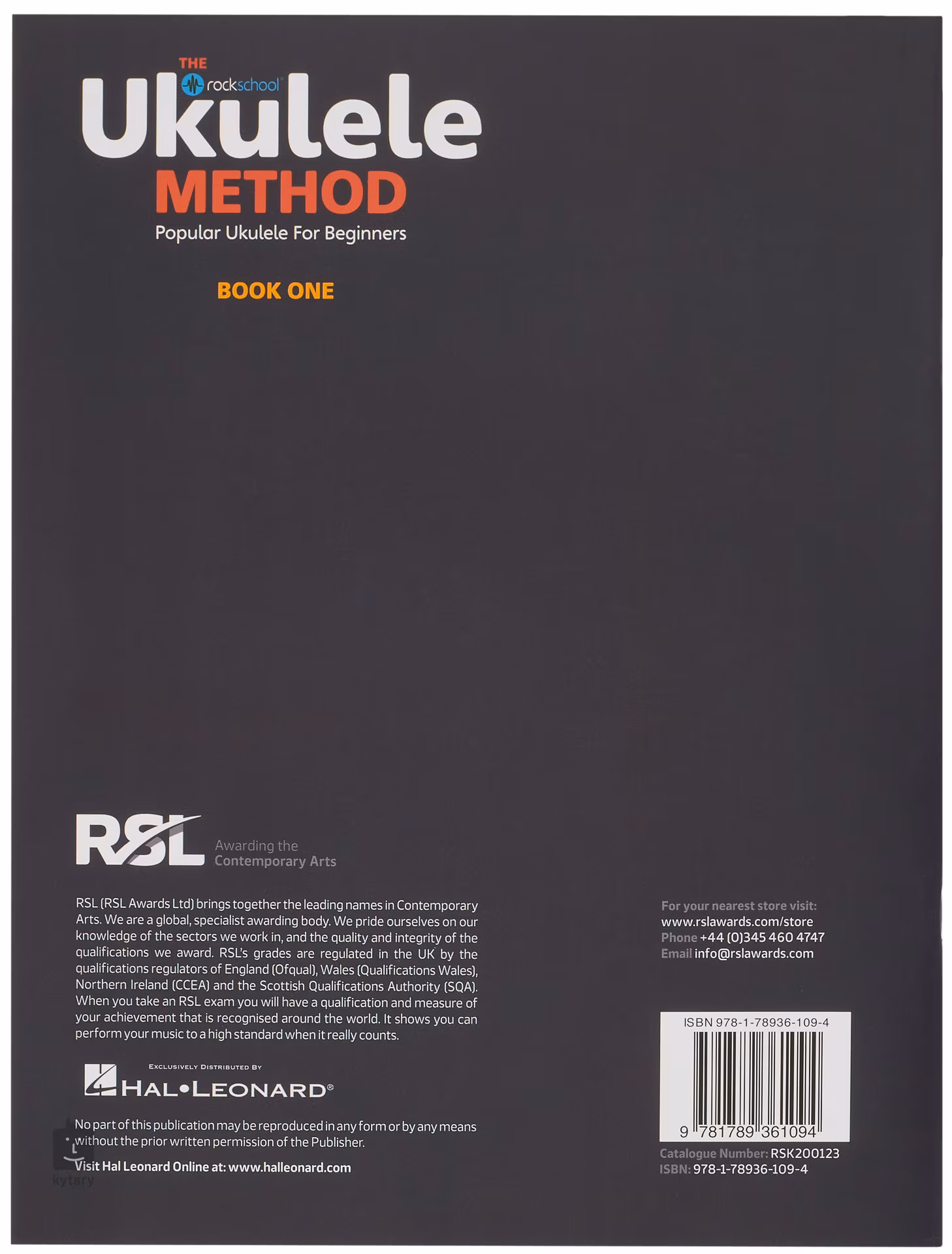 A kétkötetes Rockschool Ukulele Method Book sorozat a kezdő ukulele játékosokat vezeti be a játék alapjaiba. A könyv első kötete hat alaptémát, újonnan készített gyakorlatokat, játékokat és kortárs zenei stílusban írt dalokat, kísérő tanári részeket, valamint letölthető, professzionális minőségben rögzített zeneszámokat tartalmaz.