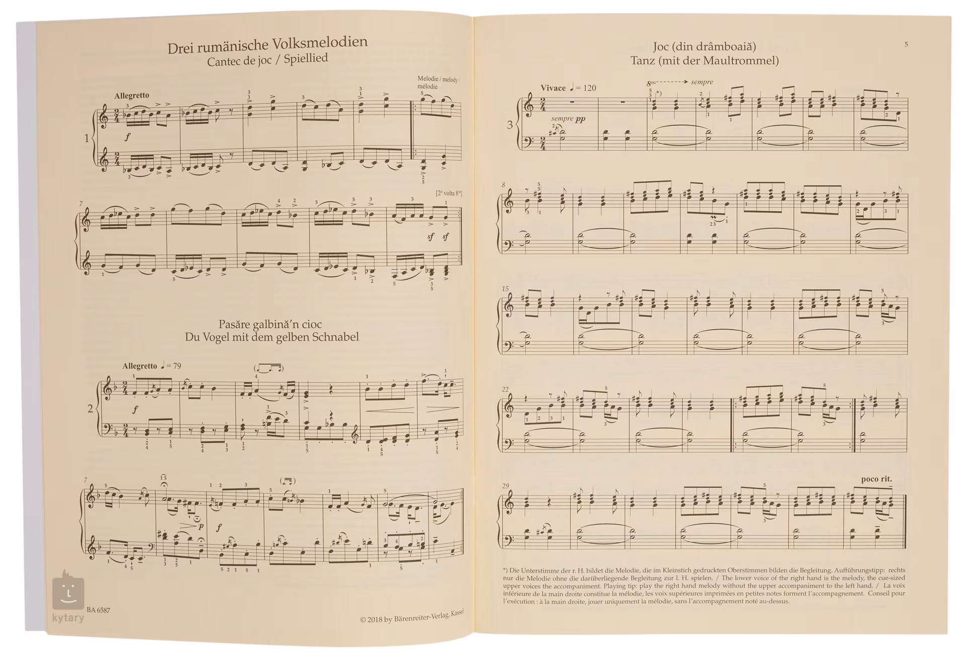 Bartók zongoraműveinek ezen gyűjteménye egyszerűbb és nagyobb kihívást jelentő darabokat, táncformák széles skáláját és népi miniatúrákat egyaránt tartalmaz. A zeneiskolai oktatás és a magánórák repertoárjának szívesen látott kiegészítője. A jól ismert művek mellett eddig még nem szerkesztett darabok is szerepelnek benne, köztük két, a kiadvány zenei szerkesztője, Michael Topel által befejezett töredék.