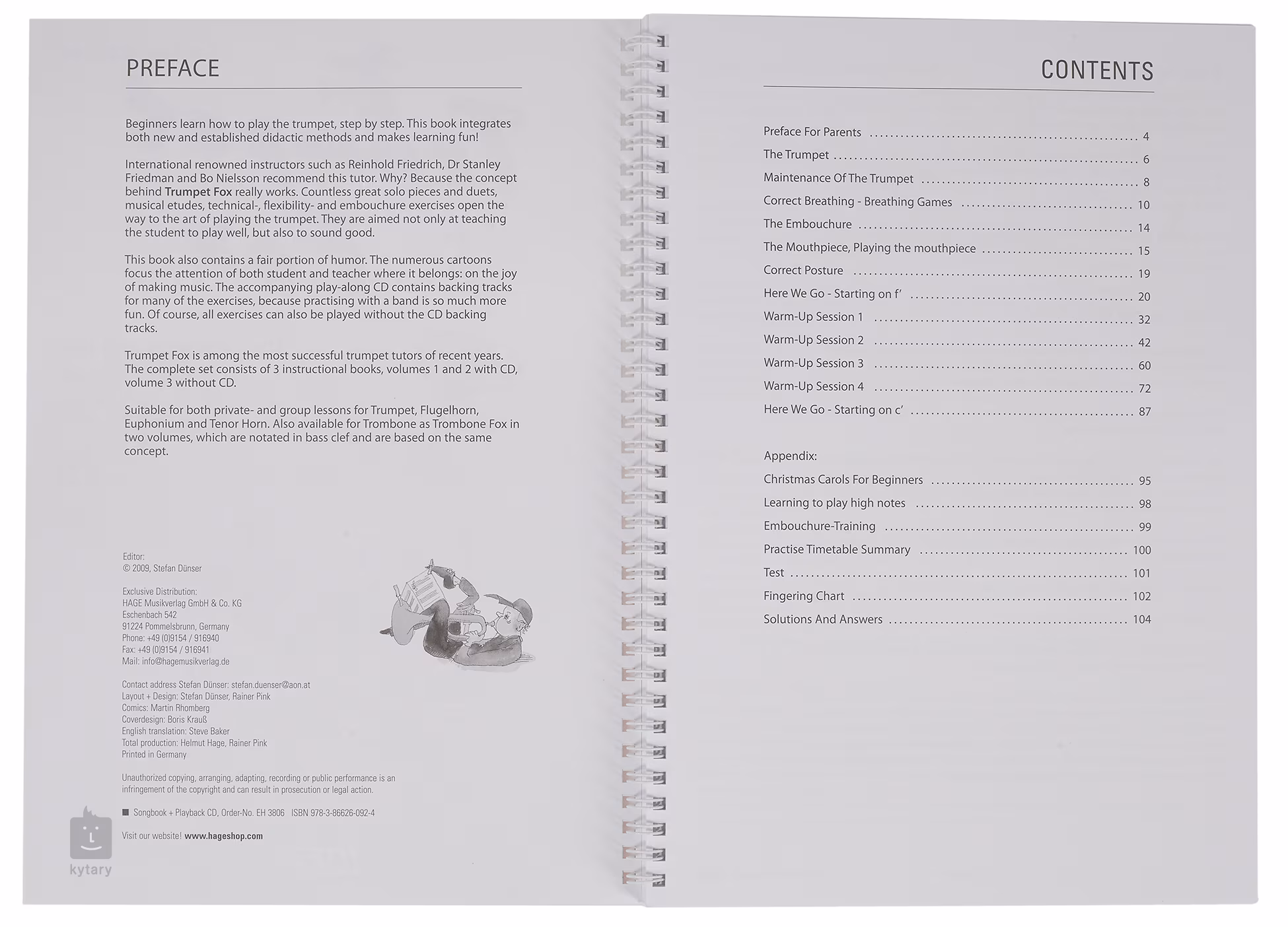 A Trumpet Fox egy háromkötetes trombitás tankönyvsorozat, amely alkalmas egyéni oktatásra, zeneiskolák és autodidakta tanulók számára. A könyv szólóhangszeres és duó darabok széles választékát kínálja, valamint zenei etűdöket és gyakorlatokat a játéktechnika és a tapintás gyakorlására. A trombitaróka-könyvek szerves részét képezi a humor, hiszen a hangszeres játék - legyen az felnőtt vagy gyermek - mindenekelőtt szórakoztató kell, hogy legyen. A mellékelt audio CD számos gyakorlathoz tartalmaz kísérő hangfelvételt.