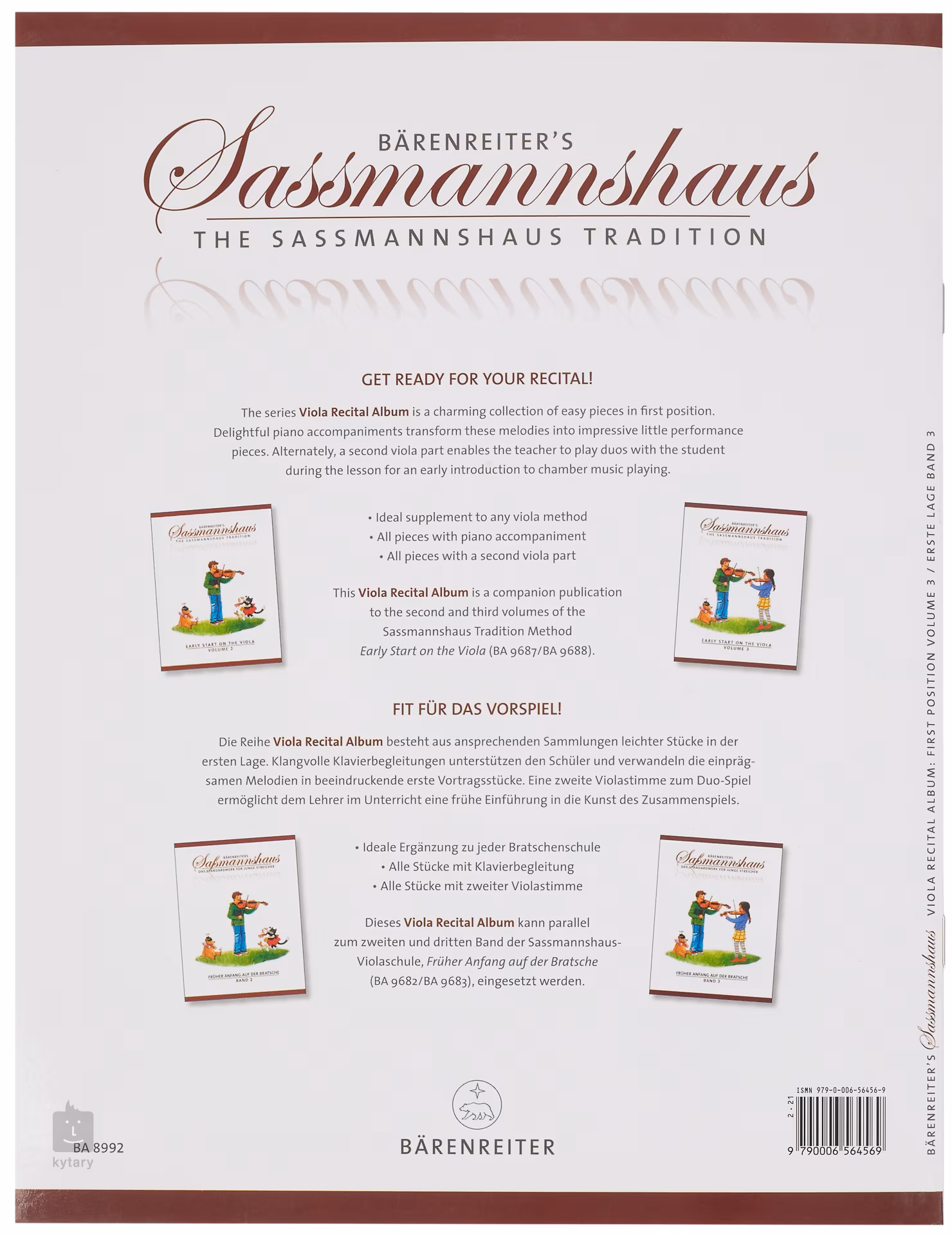 A brácsás versenyműalbum harmadik kötetének hét versenyműve a második kötettel együtt a "Früher Anfang auf der Bratsche" hagyományos Sassmannshaus-i brácsaiskola tanítását gazdagítja. Azonban más iskolák tanulói is biztosan hasznát vehetik ezeknek az első fekvésű daraboknak.