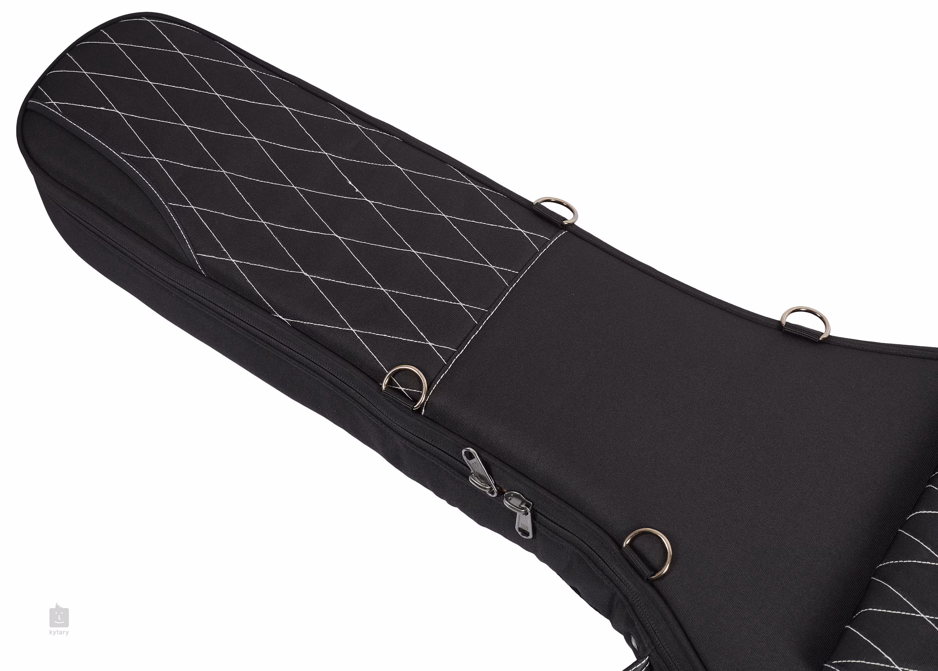Ezek a luxus RB30 sorozatú tokok akár 30 mm vastag, extra merev, rétegelt EPE és poliuretán habból készült párnázással rendelkeznek, amely rendkívül könnyű, és megbízhatóan védi a hangszert az ütésektől. A külső oldal vízálló és strapabíró 900D poliészterből készült, amely ellenáll a szakadásnak és kopásnak, míg a belső oldal vastag, puha plüssréteggel borított és vízálló kivitelű. Az alján masszív PVC megerősítést talál, amely nemcsak a szerszámot, hanem magát a tokot is védi a kopástól. Ez a modell a pánttekercs levehető védőpárnázásával és megerősített, állítható nyaktámasszal is rendelkezik, rögzítő rendszerrel. A cipzárak minősége miatt sem kell aggódnia, mivel a gyártó rendszeresen teszteli őket, és több mint 8000 fel- és lehúzást is könnyedén kibírnak.