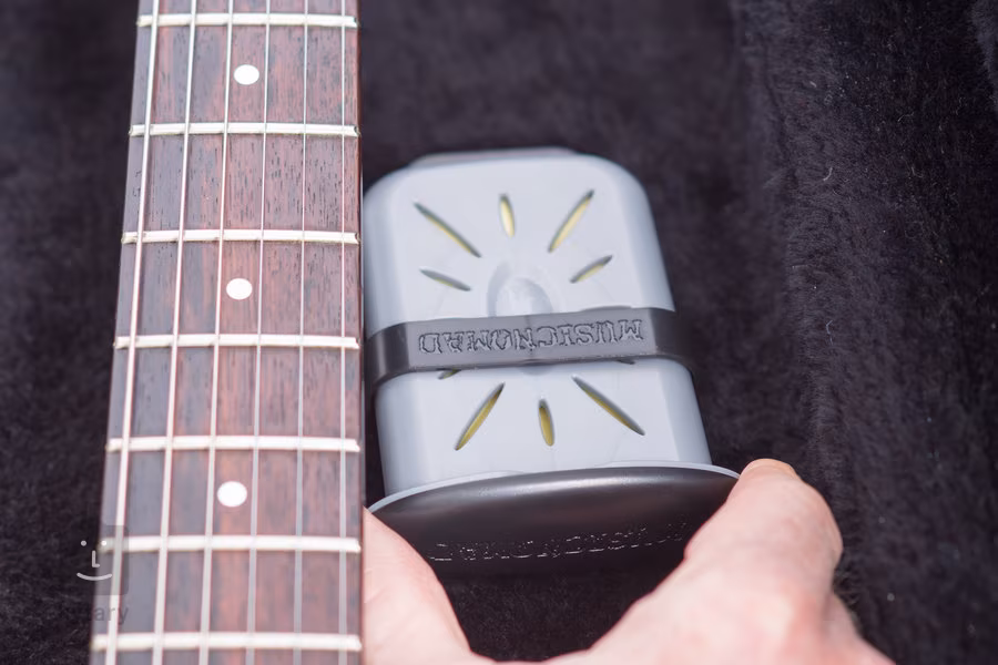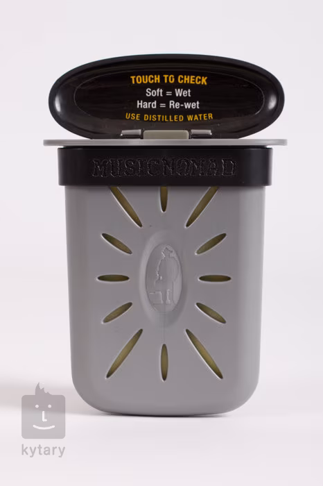 Ahhoz, hogy a fából készült húros hangszerek a legjobban szólaljanak meg és a legjobban nézzenek ki, megfelelően nedves környezetre van szükség, különben a fa kiszáradhat, elvetemedhet, és legrosszabb esetben megrepedhet. Ez a Music Nomad párásító ideális körülményeket biztosít gitárja, basszusgitárja, mandolinja, csellója, nagybőgője és más hangszerei tárolásához anélkül, hogy a hagyományos párásítók karbantartásával járó gondokat kellene elviselnie. Tartalmaz egy innovatív Humid-i-Bar szivacsot, amely saját súlyának tízszeresét szívja fel a vizet. Egyszerűen helyezze be a párásítót a szerszámtáskába, és rögzítse a párásító hátoldalán található öntapadós csíkkal. A nedvesség biztonságosan, csöpögés nélkül kerül a levegőbe.