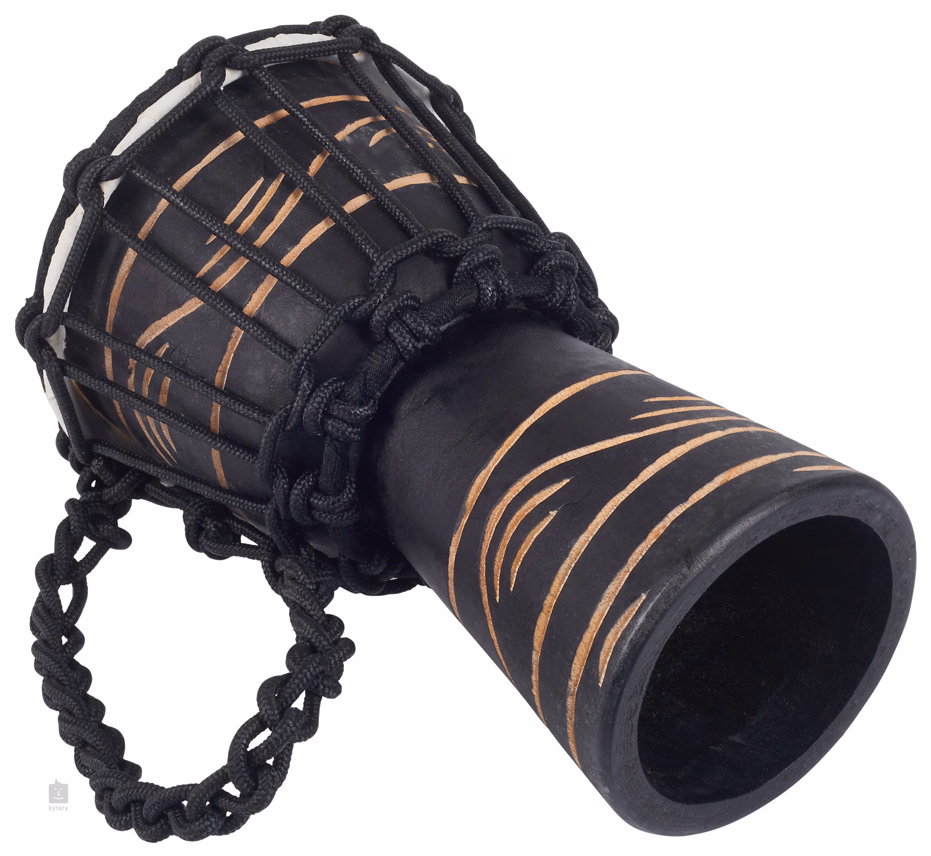 Ez a modell klasszikus afrikai dizájn alapján készült, a test egy darab kézzel faragott mahagóni fából készült, a membránhoz kézzel szedett kecskebőrt választottunk. A hangoláshoz nejlonkötelekből álló rendszert használnak. Ennek a djembének az átmérője 4,5 hüvelyk, azaz körülbelül 11,5 centiméter.