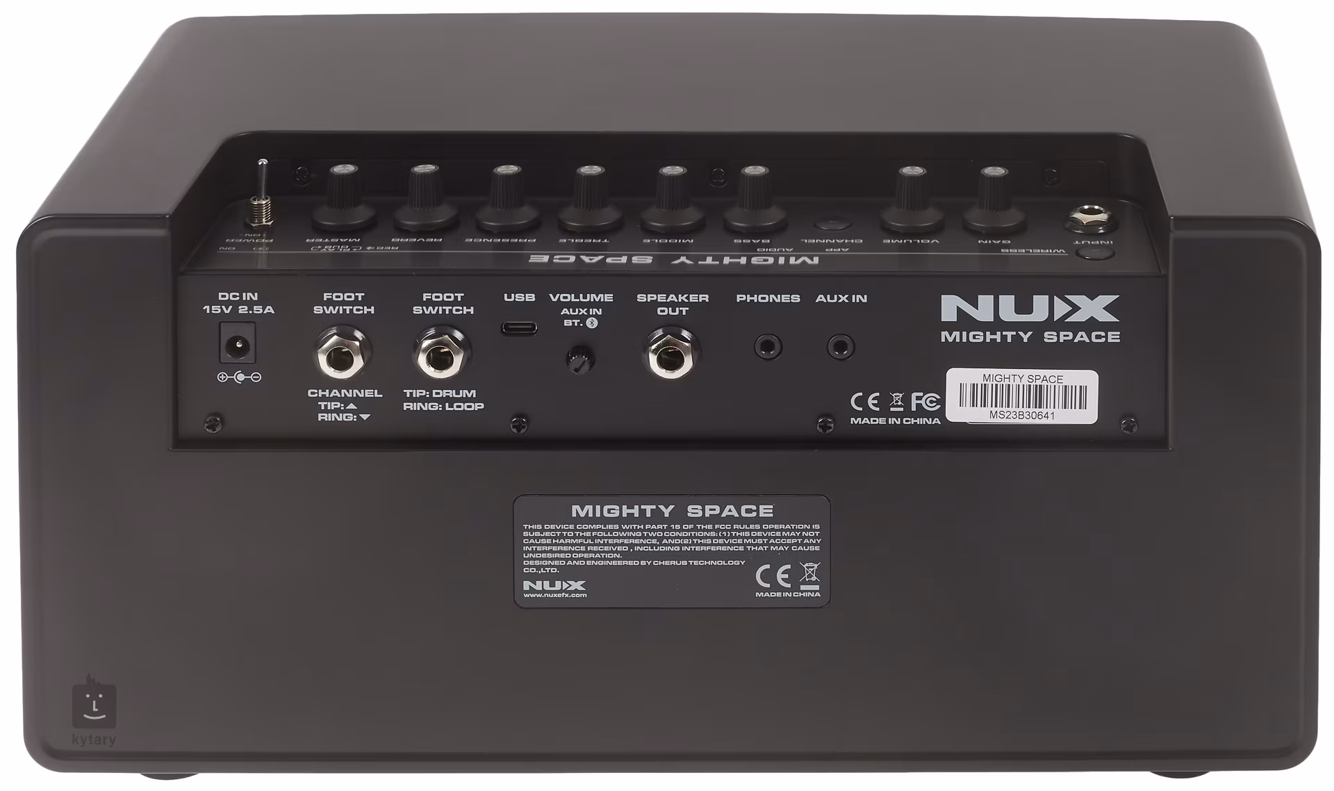 Gain, Volume, Bass, Middle, Treble, Presence, Reverb, Master, Channel switch, Wireless switch, Aux In/Bluetooth Volume pot