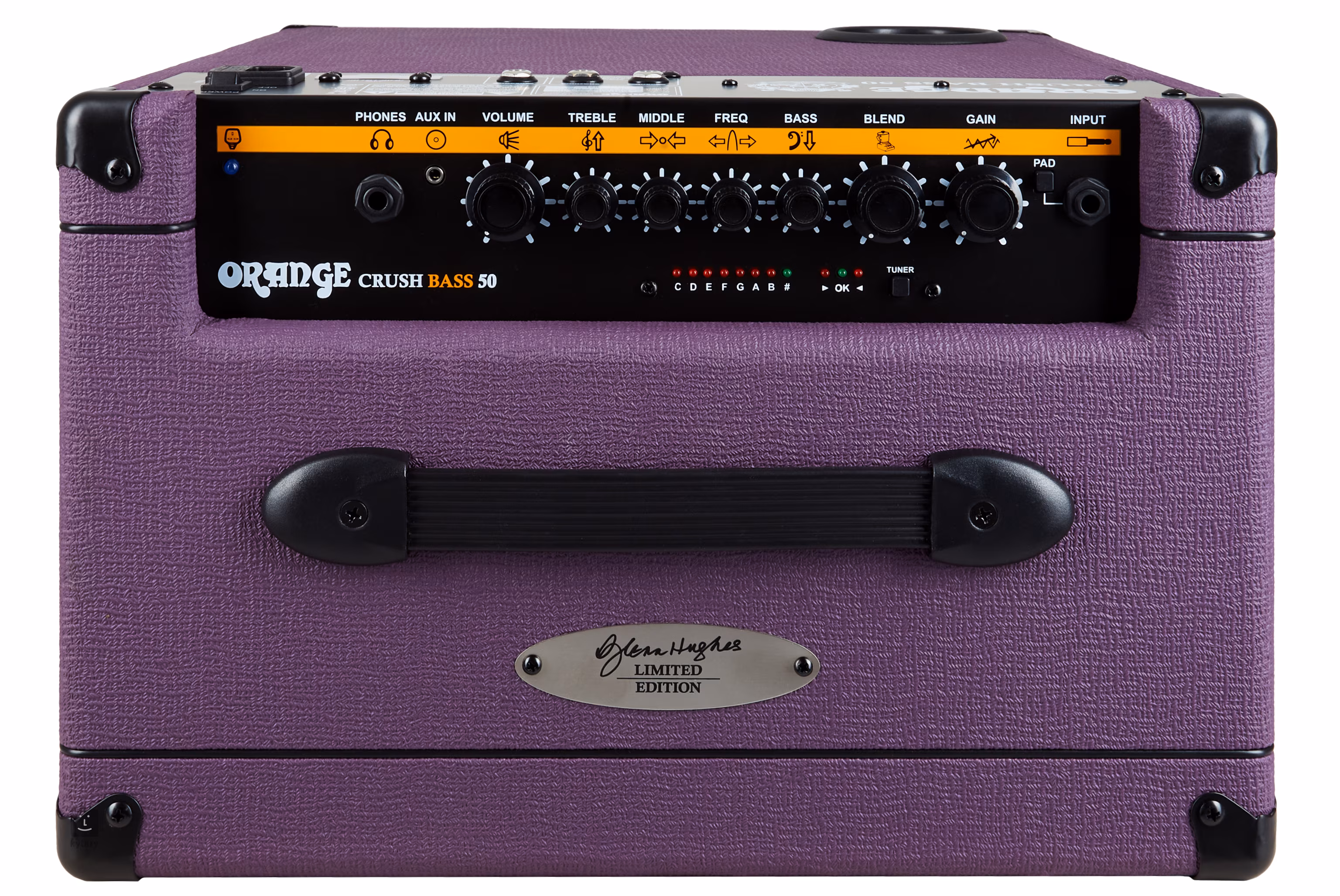 Az új Orange Crush Bass 50 a híres basszusgitáros, Glenn Hughes signature modellje. Ezt a kombót a népszerű Orange AD200 és OB1 erősítők ihlették, amelyektől kölcsönzi összetéveszthetetlen hangzásjellemzőit. Akár gyönyörűen tiszta és meleg hangzásra, akár sűrű, vintage hangulatú torzításra vágyik, ez a kompakt kombó nem fog csalódást okozni.