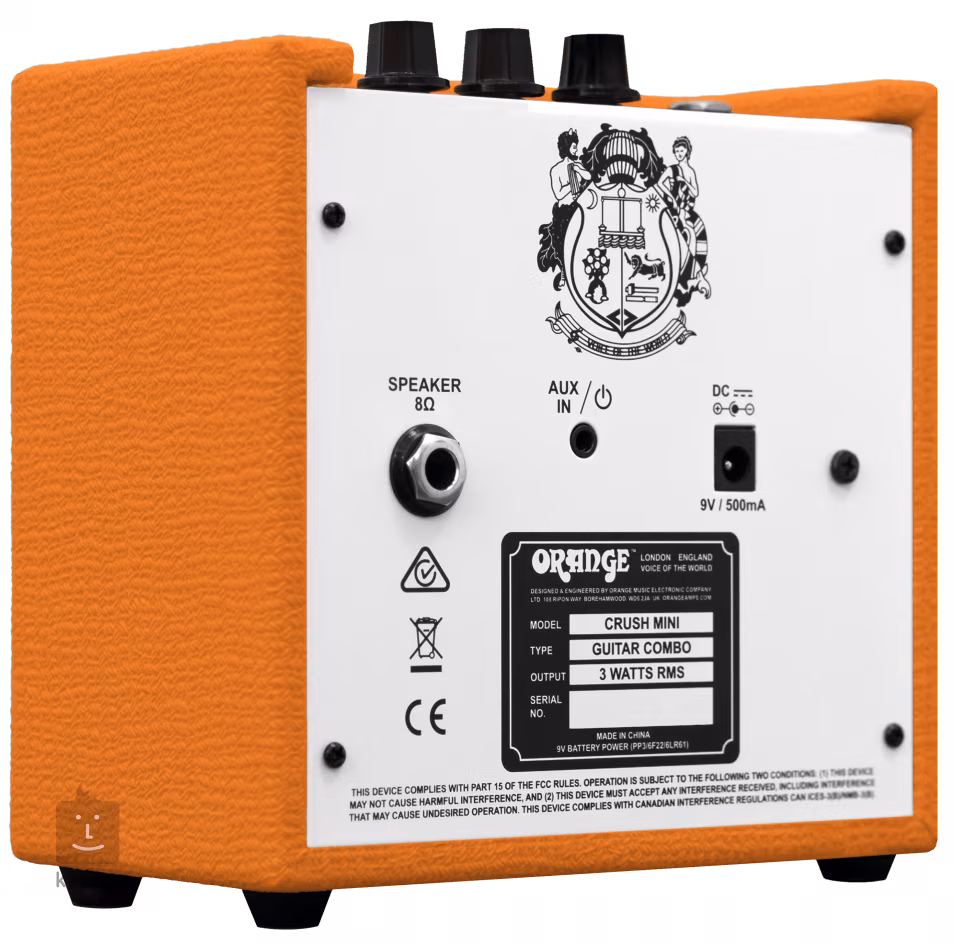 Mostantól bárhol élvezheti a klasszikus Orange hangzást. Az Orange Crush Mini egy ultrakompakt tranzisztoros kombó, amely 9V-os elemmel vagy opcionális adapterrel működtethető - akárcsak az effektjei. Egy csatornát és három egyszerű vezérlőt kínál az erősítési szint, a hangszín és a hangerő beállításához. A gyártók nem feledkeztek meg a beépített kromatikus hangolóról sem, amely a vezérlőpanelen világos LED-ekkel, fejhallgató kimenettel és Aux In bemenettel rendelkezik, amelyhez csatlakoztathatja kedvenc audio/mp3 sávjait, amelyekre szabadon improvizálhat. Csatlakoztasson külső hangszórót a kombóhoz a 8 ohmos impedanciájú kimenettel, hogy nagyobb teret adjon a hangzásnak. Természetesen a dizájn jellegzetes narancssárga vinil felülettel és jellegzetes hűtőráccsal rendelkezik.