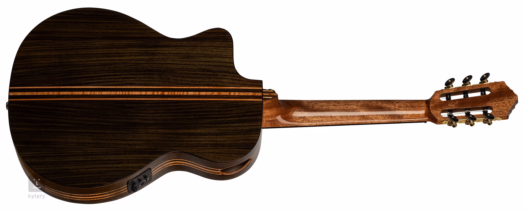 A Grandsuite CE 4/4 NAT hangfalát tömör európai lucfenyőből készítették. A laminált rózsafa hátlapot és az oldalakat lángolt juhar csíkok díszítik. Sokan fogják értékelni a gitár hátoldalán található második hanglyuk modern tulajdonságát is.