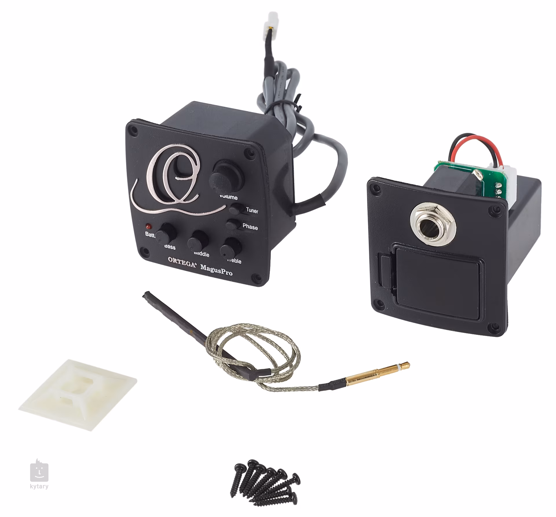 Az Ortega MagusPro/G aktív elektronika ideális módja az akusztikus/klasszikus gitár vagy akusztikus basszusgitár megszólaltatásának. A csomag tartalmaz egy előerősítőt, amelyet a hangszer hátuljába való beépítésre terveztek, háromsávos EQ-val (Bass, Middle, Treble), hangerőszabályzóval, fáziskapcsolóval, beépített hangolóval és kétszínű kijelzővel, kimeneti csatlakozóval, elemmel ellátott kupakkal/bemenettel (9V), piezo hangszedővel és kábelkötegelővel.