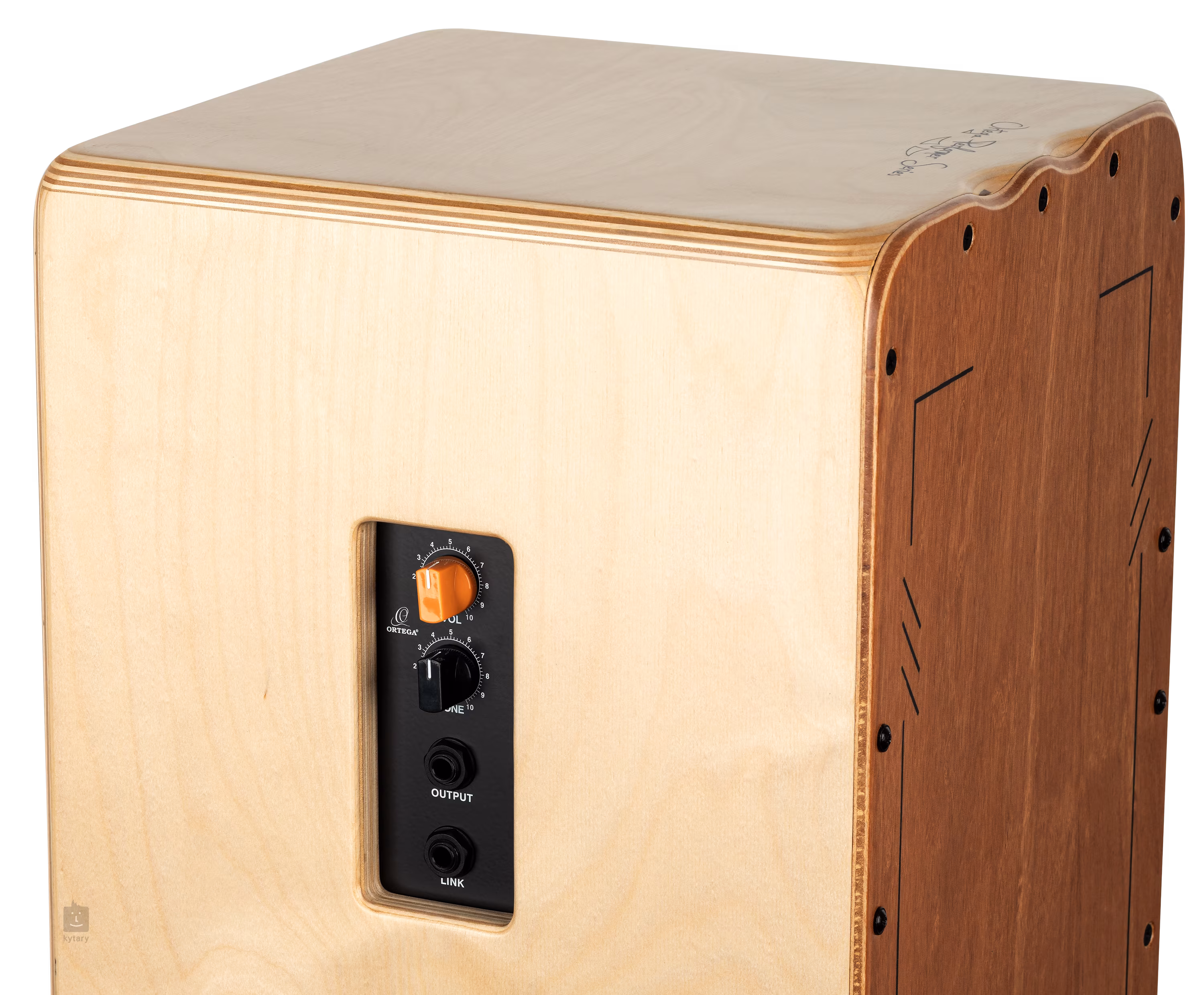 Az OCJPF-2 elektroakusztikus cajon a jól ismert Ortega márkától a csúcskategóriás Performer sorozatban. Tökéletes anyagokból kézzel készített, előerősítővel és piezo hangszedővel felszerelt. A hangerő és a hangszín potméterek a könnyű vezérléshez és egy 6,3 mm-es jack bemenet a csatlakoztatáshoz. A cajon lekerekített sarkokkal, valamint elülső lemezzel rendelkezik a nagyobb kényelem érdekében. Kellemes bónusz a speciálisan kialakított gumilábak. Egy hangszer igényes játékosok számára.
