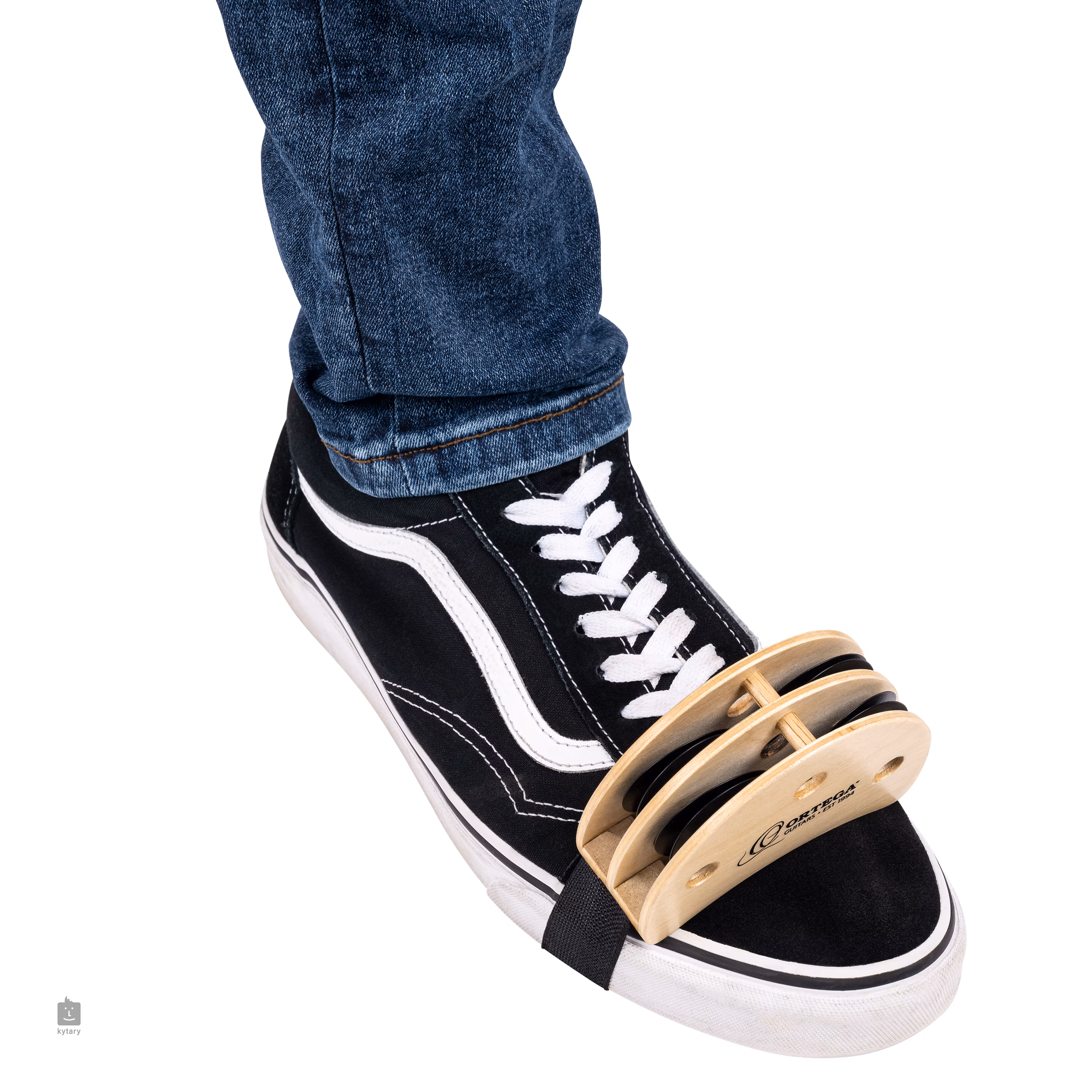Az Ortega OGFT ideális kiegészítő a vonós hangszereken játszók számára. Ez a könnyű és sokoldalú "kéz nélküli" ritmushangszer tiszta és átható hangzást biztosít anélkül, hogy elnyomná a játékot. Könnyen a játékos lábára rögzíthető és készen áll. A test gumifa, a cintányérok rozsdamentes acélból készültek.