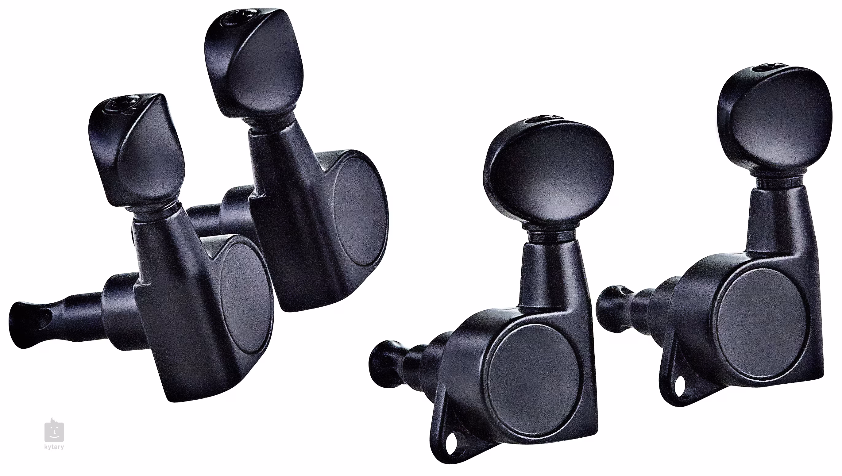 Die-Cast hangoló mechanika ukuleléhez. Fényes fekete fényű fémöntvényből készültek, a fogók tartós fekete műanyagból készültek.