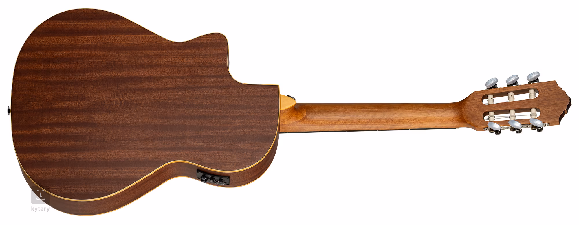 A húrokat klasszikus nyitott mechanikába szerelték, gyöngyházmintás gyöngyházfogókkal és tizenkét lyukú diófa fogólappal. A stílusos kivitelezést az ABS műanyag díszítés és a díszes rozetta emeli ki.