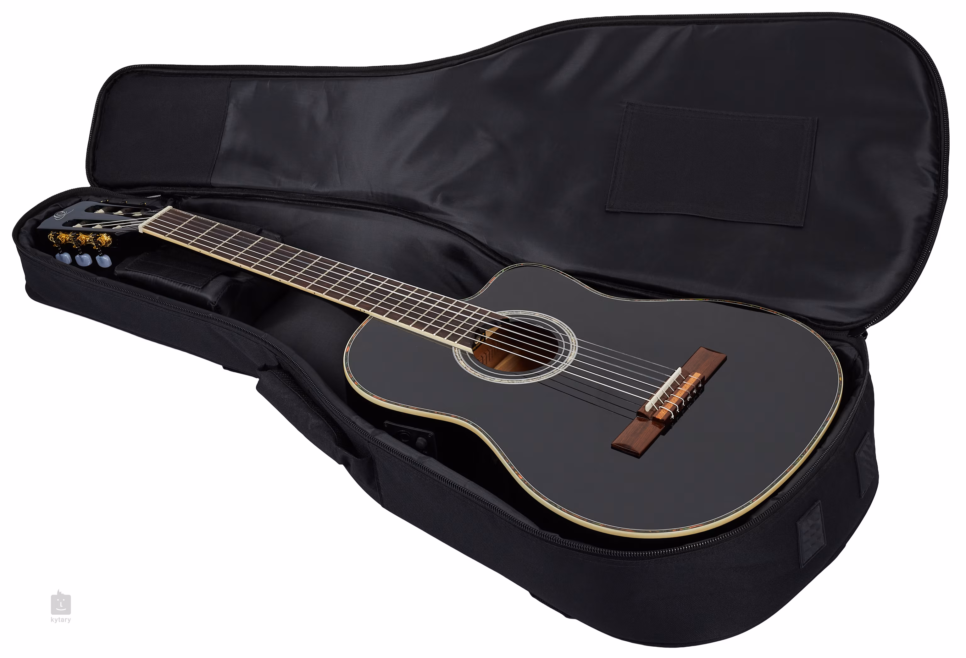 Az Ortega márka klasszikus gitárjai a Family Pro sorozatból ideális választás minden szintű gitáros számára, aki minőségi hangszert keres megfizethető áron. Jöjjön el hozzánk, próbálja ki őket, és meggyőződhet róla! Ezek a gitárok félig tömör testtel rendelkeznek, amelynek elülső része tömör fenyőből vagy cédrusból, oldala és hátsó része laminált mahagóniból készült, tömör mahagóni nyakkal, kétirányú merevítővel és diófa fogólappal. A húrok klasszikus nyitott mechanikákban és diófa húrtartóban vannak rögzítve, tizenkét lyukkal. A hagyományos díszítőelemeket a szegély, a rozetta és a cég logója képviseli a hangszer fején. Ezt a modellt Ortega MagusPro-NL elektronikával szerelték fel, beépített hangolóval, háromsávos ekvalizerrel, hangerő-szabályzóval és Phase gombbal, amelynek funkciója a fázisfordítás (zajcsökkentés). A gitár hangszertáskában (gig bag) kerül forgalomba.