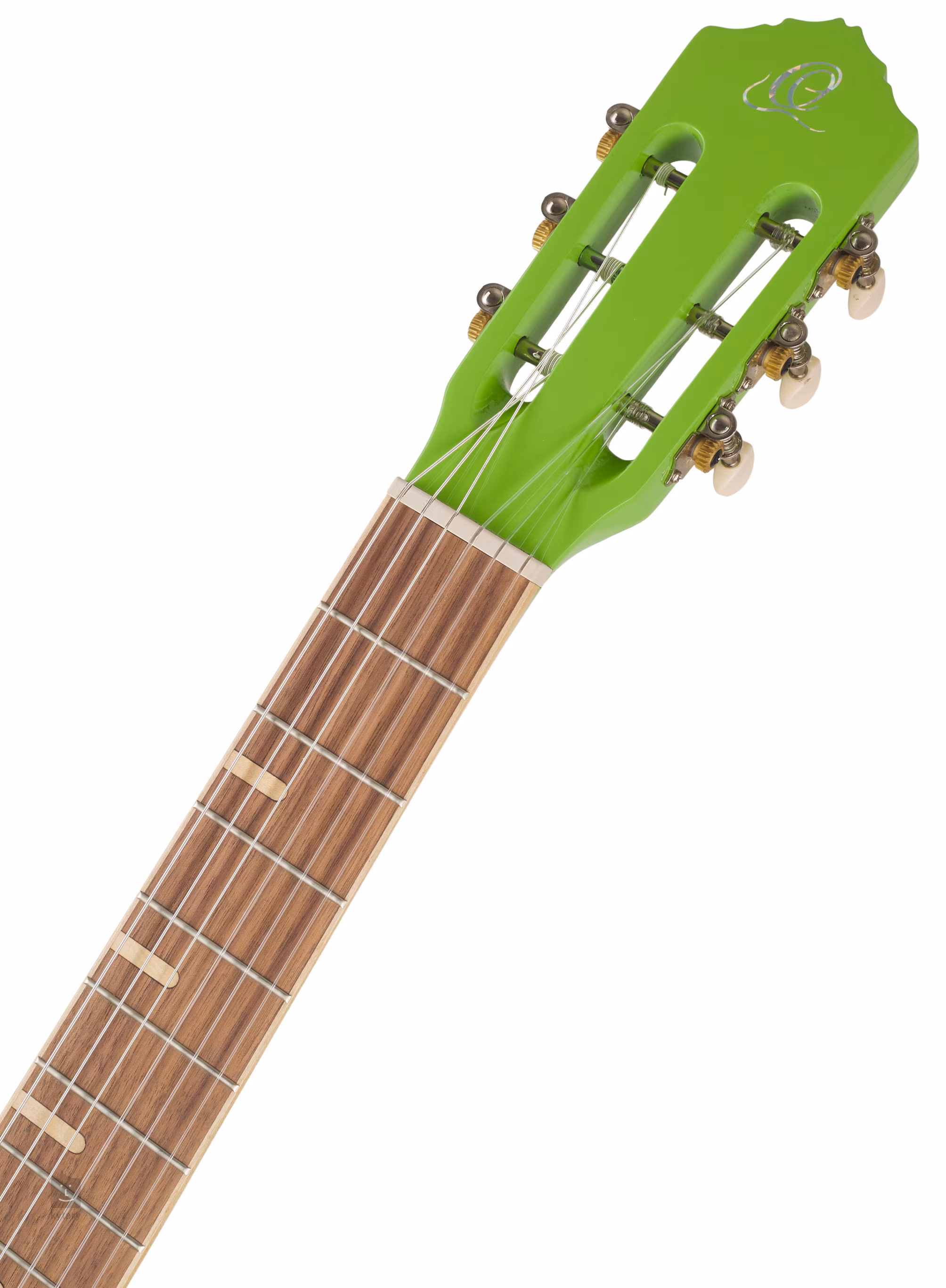 Az Ortega RGA klasszikus gitárok a Gaucho sorozatból egy kisebb testet kínálnak egy Parlor akusztikus gitár formájában.