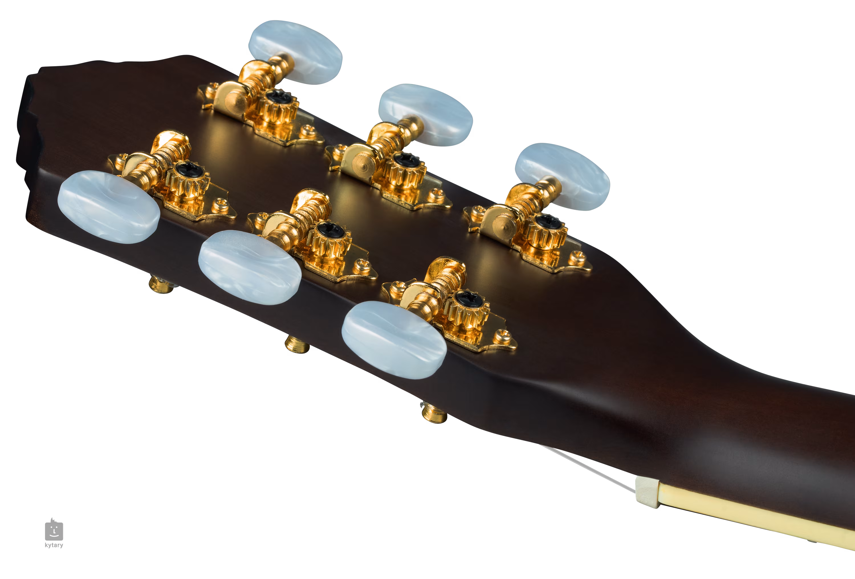 A húrokat nyitott, aranyozott hangológépek tartják, a műanyag nulla bund fölött pedig diófa fogólap található. A stílusos kialakítást a hangfal színes fényezése, az elefántcsont imitált test és a fogólap körítése, a fogólapon található gyöngyház pozíciójelzők és a hangszer fejlécének logója emeli ki.