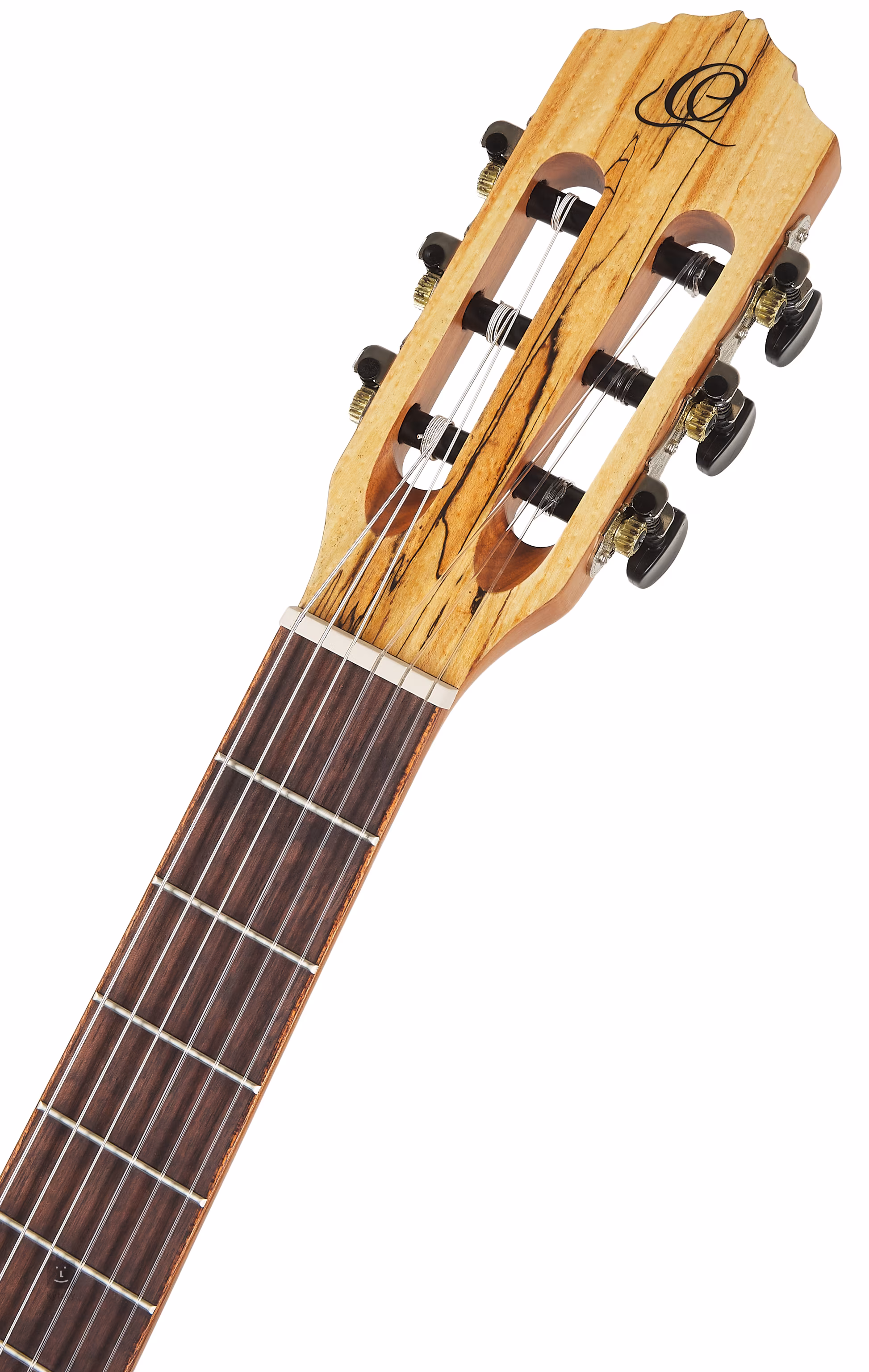 Az Ortega Private Room sorozat kiváló minőségű, félig tömör klasszikus gitárokat kínál, amelyek kézzel válogatott anyagokból (fából) készülnek, és továbbra is nagyon kedvező áron kaphatók. A keskenyebb nyakot (a nulladik fekvő szélessége 48–50 mm) azok a zenészek fogják értékelni, akiknek vékonyabb ujjaik vannak, de azok is, akik inkább az akusztikus gitárok nyakának méreteit szokták. A gitár teste rétegelt juharfából készült, amelynek mintázata (AAA minőség) exkluzivitást kölcsönöz a hangszernek. A fa nyakhoz diófa fogólap van ragasztva, amelyen tizenkilenc fekvés található. A húrok klasszikus kialakítású, krómozott hangolókulcsokba vannak rögzítve, fekete csapokkal és diófa húrtartóval. A szép kivitelezést aláhúzza a sapele szegély és a cég logója a hangszer fején. A gitár tokban (gig bag) kerül forgalomba.
