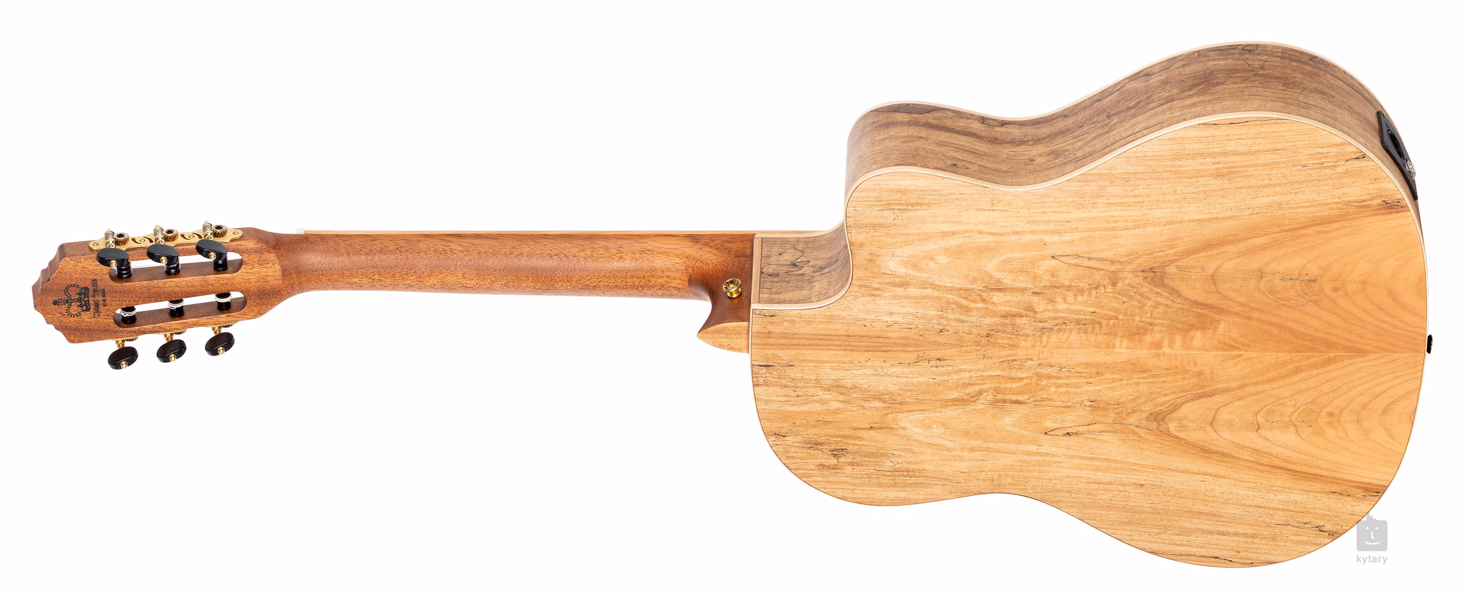 A gitár Fishman/Ortega Clasica Blend elektronikával van felszerelve, beépített hangolóval, háromsávos EQ-val, hangerőszabályzóval, Phase gombbal a fázis megfordításához (zajcsökkentés) és Notch szűrővel a visszacsatolás elnyomása funkcióval. A gitár jelét a klasszikus 6,3 mm-es jack és XLR kimeneten keresztül is továbbíthatjuk. A húrokat pau ferro farokrész és klasszikus nyitott hangolókarok rögzítik arany kivitelben, fekete fogantyúkkal. A szép kivitelezést hagyományos elemek hangsúlyozzák a díszes rozetták és a peremszalagok formájában.