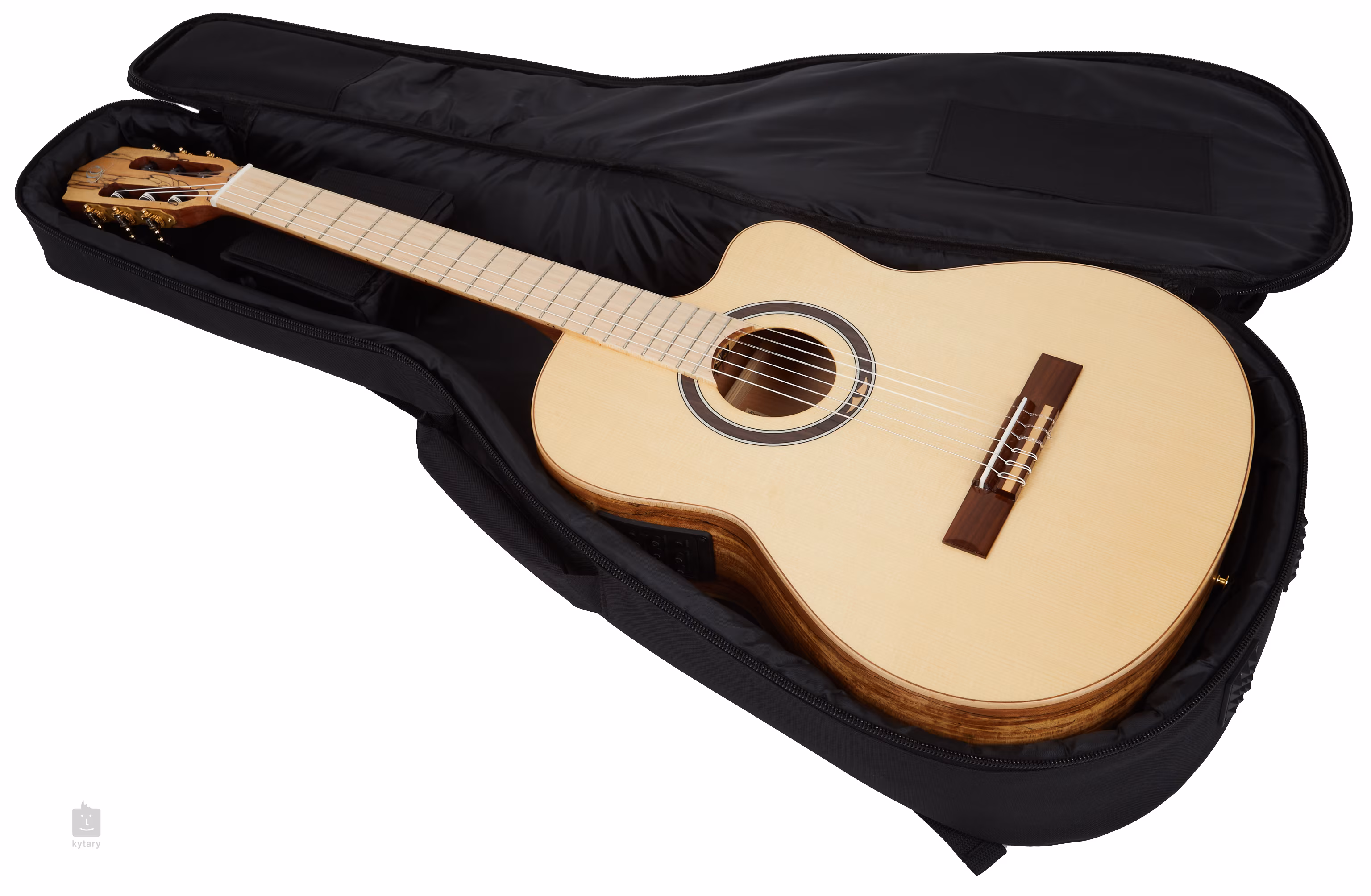 A hangolás stabilitását a húrok fekete csapokkal ellátott, aranyozott mechanikákba és pau-ferro fából készült fogólapba való rögzítése garantálja. A hangszer dizájnját megfelelően kiegészíti a juharfából készült vázkeret és a gyöngyházból, valamint dió- és juharfa vonalakból álló díszes rozetta.