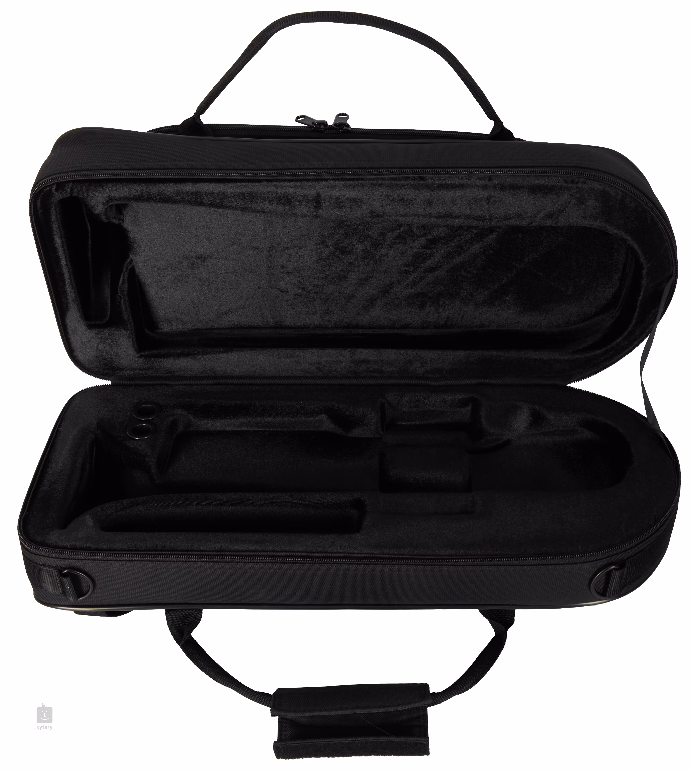 Lágyított poliészterből készült csőhüvely. Külső zsebbel rendelkezik a kisebb kiegészítők számára, belső habszivacs párnázással, velúr béléssel, fogantyúval, két vállpánttal és cipzárral.