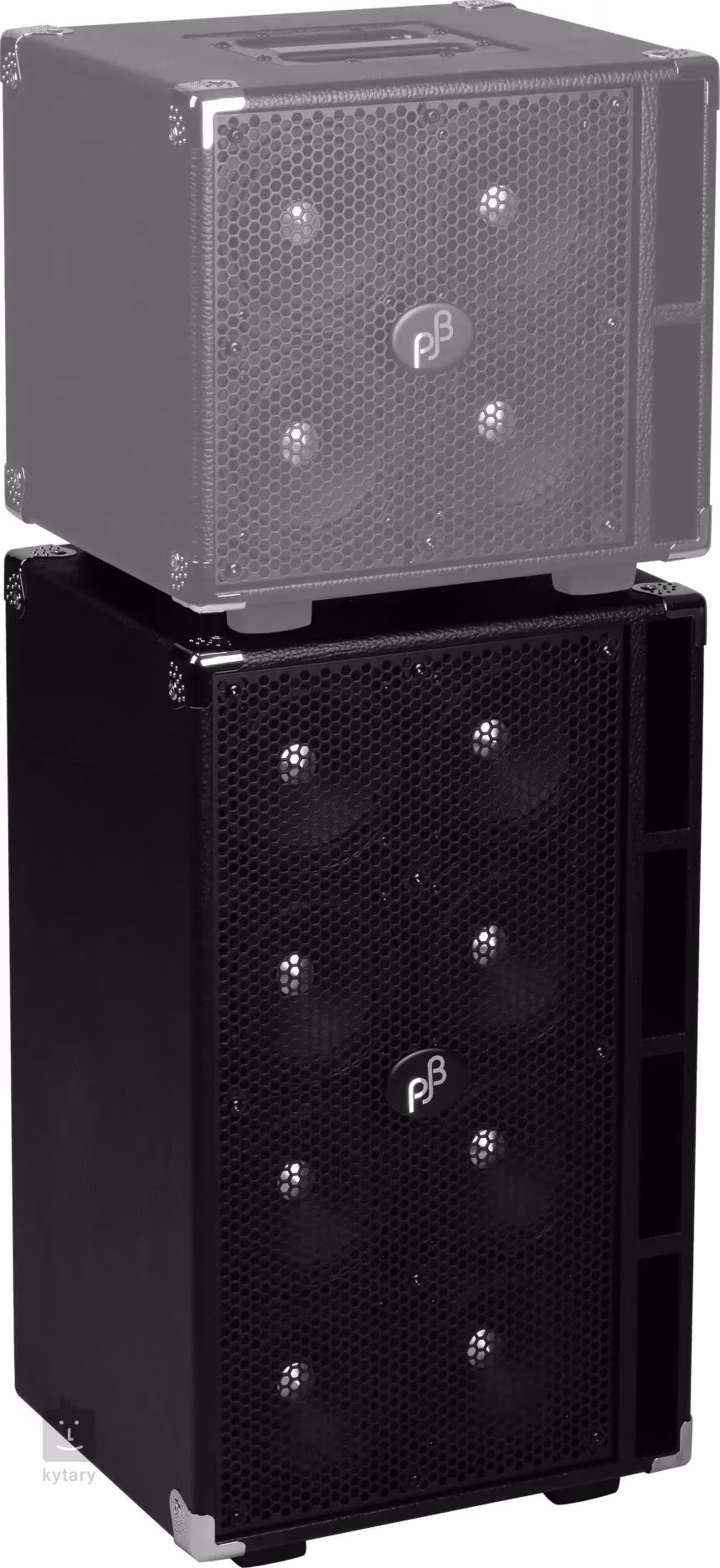 Ez a hangszóródoboz négy pár speciális PJB Piranha hangszóróval van felszerelve, amelyek annak ellenére, hogy mindössze 5" átmérőjűek, a Phil Jones hangszerektől megszokott telt basszushangzást adják. Kompakt mérete ellenére a hangszóró kompromisszumok nélküli teljesítményt és minimális torzítást nyújt még igazán mély basszushangok esetén is. Természetesen széles frekvenciatartomány és mindenekelőtt gyors megszólalás, nagyszerű dinamikával. A doboz felépítése masszív és kellemesen könnyű nyírfa rétegelt lemezből készült, ami szintén csökkenti a nem kívánt rezgések mennyiségét. Ezenkívül a doboz acélráccsal, tartós vinyl borítással vagy görgőkkel és kihúzható fogantyúval van felszerelve a kényelmes szállítás érdekében. A hozzáadott gumilábaknak köszönhetően a hangszóródoboz vízszintesen és függőlegesen is elhelyezhető.