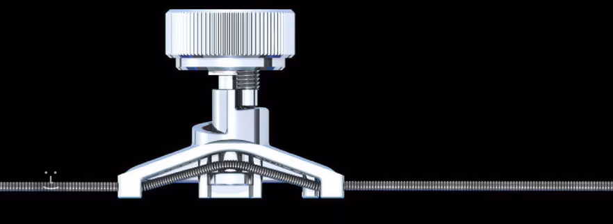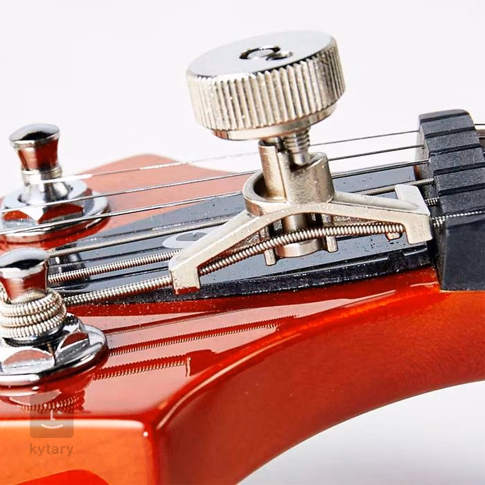 A készülék beszerelése viszonylag gyors és egyszerű - a kétkarú újrahangolót a húrra helyezi a fejrész területén, majd a kívánt hangszínt levonja. Ezután felfelé fordítja a tárcsát, és a belsőbillentyűvel a középső dugattyúütközőt az eredeti hangolásnak megfelelő magasságba állítja. Áthangolás esetén a folyamat természetesen fordítva történik (a hangot a klasszikus hangoláshoz képest magasabbra állítod). Ezután a két beállított hang között egyszerűen a fő tárcsa elforgatásával mozoghat.