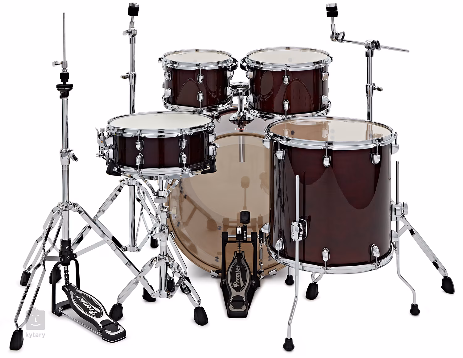 Az esztétikai és funkcionális benyomást a történelmi Premier modellek ihlette vonzó hardver hangsúlyozza. A hármas acél karimák szilárd ütést és kiváló cross-stick hangzást biztosítanak, amit a igényesebb stílusú zenészek értékelni fognak. A rack tomok közvetlenül a nagy dobhoz rögzítve tovább növelik a stabilitást dinamikus játék során.