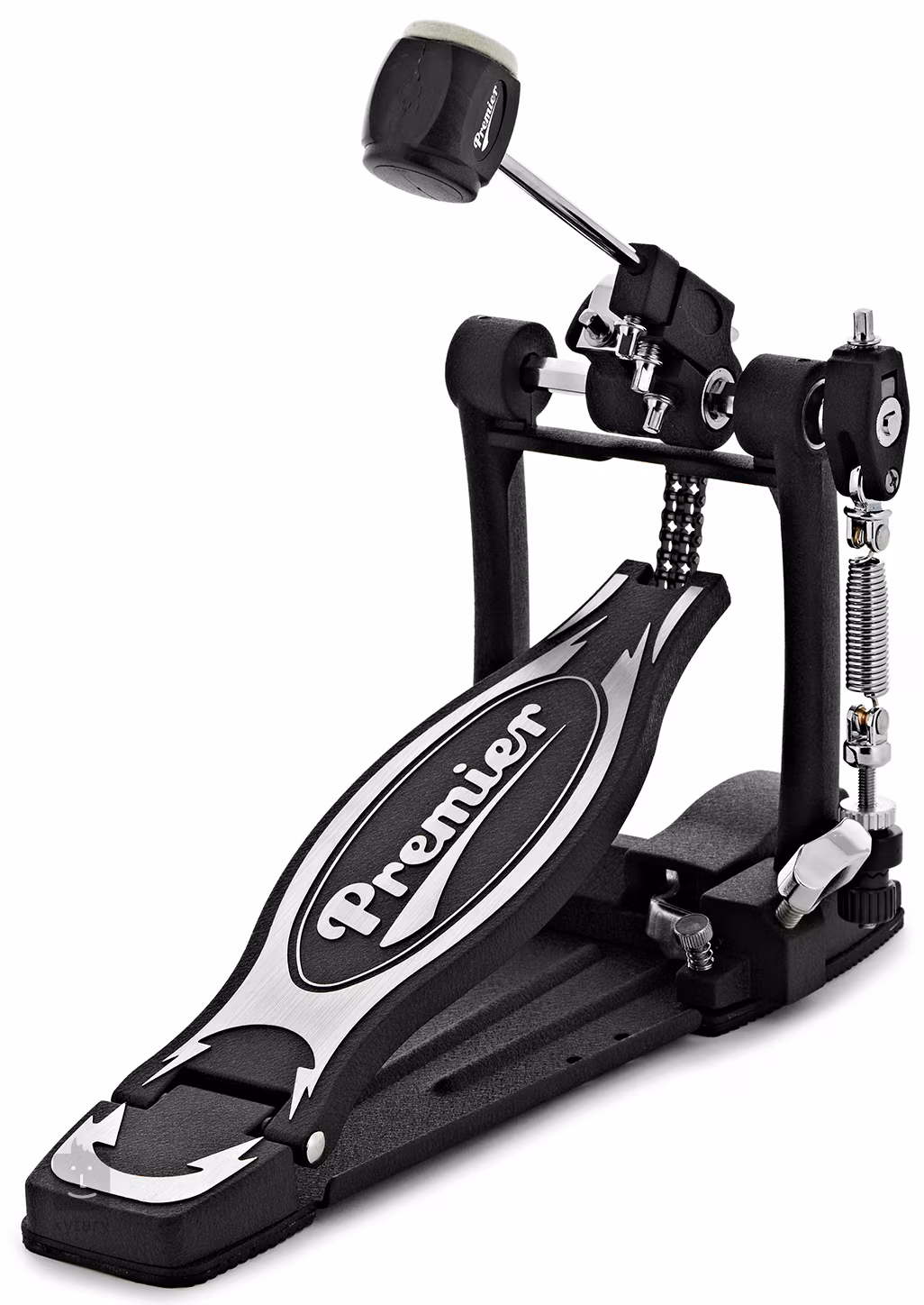 A Premier Artist Single Pedal egy megbízható és megfizethető basszus pedál, amelyet azoknak a dobosoknak terveztek, akik sima működést, pontosságot és érzékeny reakciót igényelnek a lábdobon való játékhoz. A kettős láncátvitelnek köszönhetően ez a pedál nagyobb erőt és kontrollt kínál, miközben gyors játék esetén is konzisztens és érzékeny reakciót biztosít. Az állítható rugós feszességi szakasz lehetővé teszi a pedál ellenállásának és a visszatérési sebességnek a pontos beállítását az Ön preferenciái szerint – a rugó meghúzásával szilárdabb és gyorsabb reakciót érhet el a technikai játékhoz, míg a rugó meglazításával simább, lazább érzést érhet el a kényelmes és sima groove-hoz.