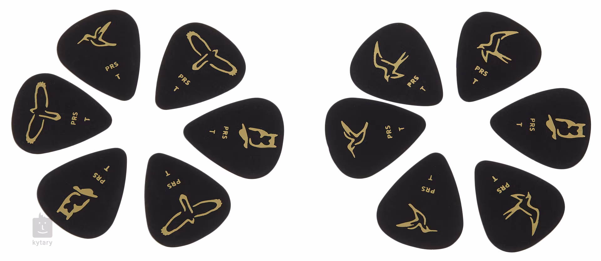 A PRS arról ismert, hogy csúcsminőségű gitárokat készít, de a gitárkellékei ugyanilyen magasra teszik a lécet. Ezek a pengetők celluloidból készülnek, amely hangzásában és tapintásában a legközelebb áll a valódi teknőspáncél pengetőkhöz, de sokkal nagyobb rugalmasságot és tiszta, tiszta leütést biztosít. Ez a készlet tizenkét puha (vékony) celluloid pengetőt tartalmaz egy gyűjthető óndobozban. Nemcsak kiváló minőségükkel, hanem elegáns kialakításukkal is gyönyörködtetnek, amelyet a PRS-gitárok fogólapjairól ismert fekete szín és az aranyszínű madármotívumok uralnak.