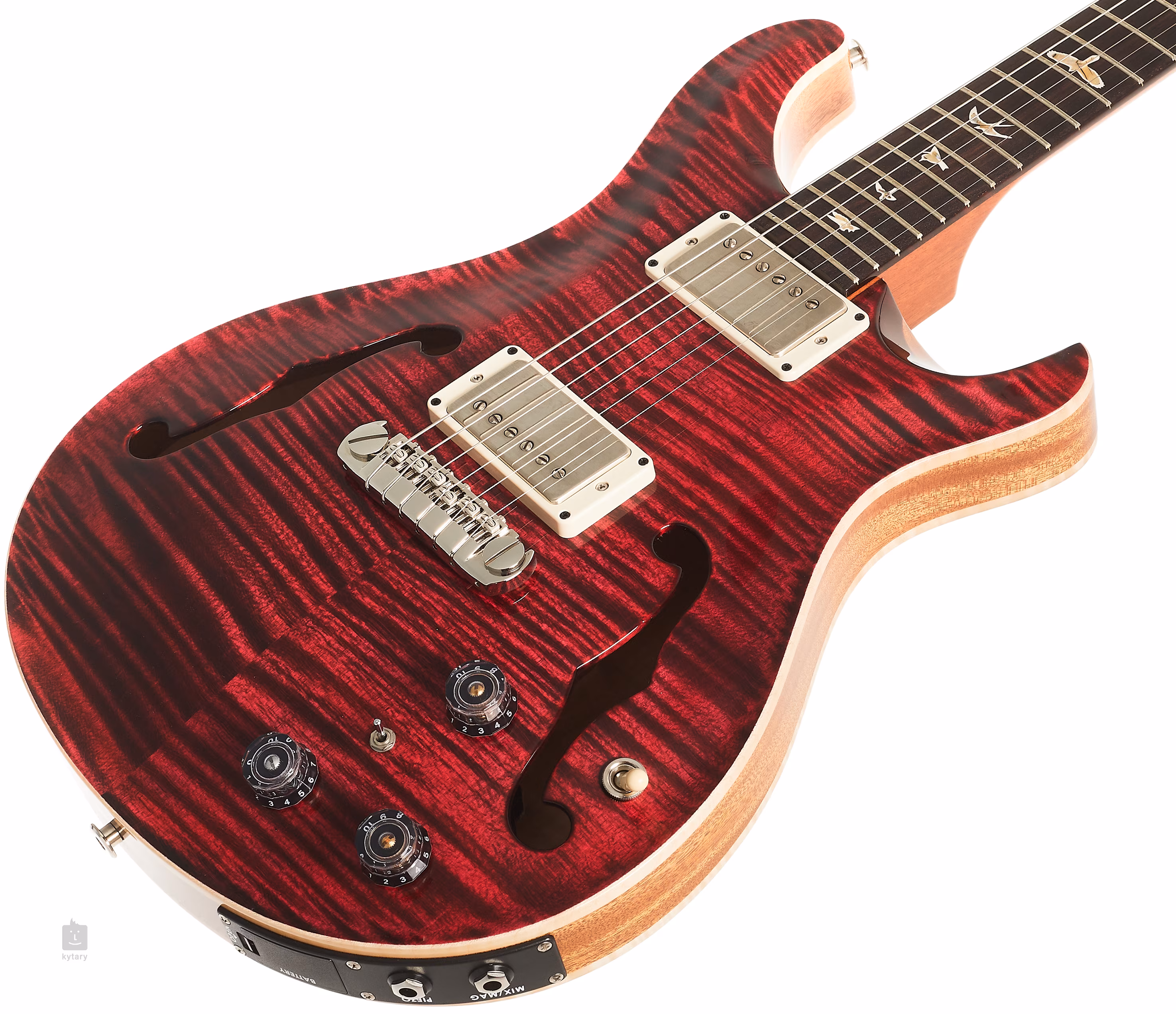 A Hollowbody II Piezo Red Tiger egy olyan gitár, amelynek rezonáns teste juhar előlapból és hátlapból, valamint mahagóni oldalakból áll. A testet fényes nitrolakk borítja. Az egy darabból álló, Pattern profilú mahagóni nyak egy huszonkét bunddal ellátott rózsafa fogólapra van ragasztva. A fogólapon való tájékozódást a PRS védjegyének számító, gyöngyházfényű madársziluettek formájú pozíciójelzők segítik.
