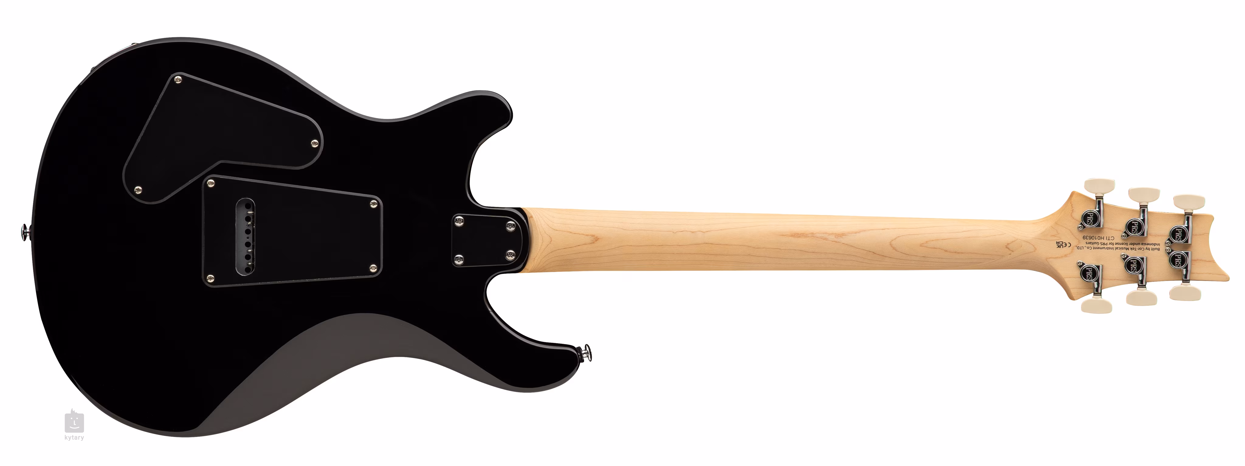 A SE CE24 Charcoal Burst gitár mahagóni testét látványos, fládrovaný juharfa fedlap díszíti. A Shallow Violin carve kivágás minőségében közelíti meg a drágább amerikai Core sorozat modelljeinek játék tulajdonságait. A Wide Thin profilú juhar nyakhoz 24 bundos paliszander fogólap van ragasztva. A fogólapon való orientációt madársziluettek formájú pozíciójelölések segítik.