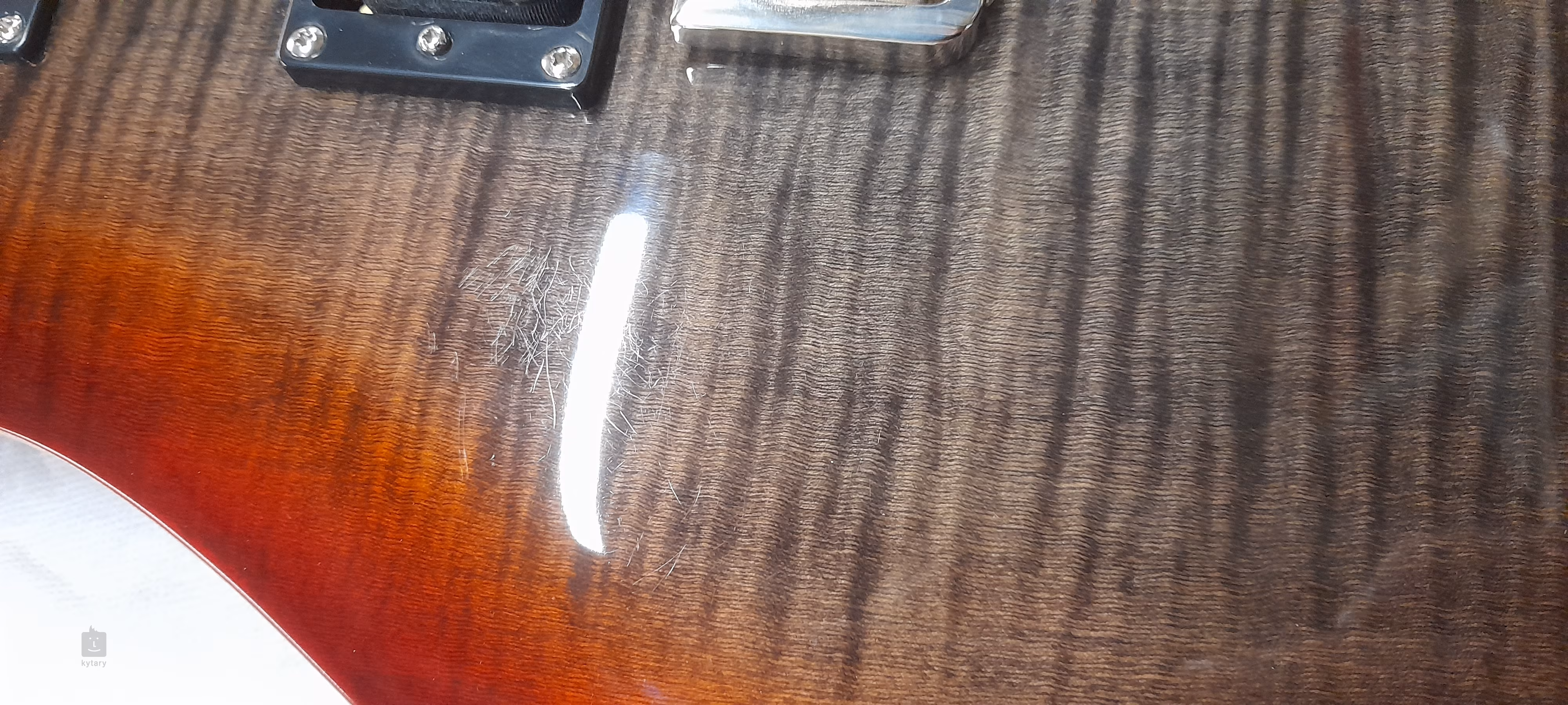 Az SE Custom 24-08 Charcoal Cherry Burst mahagóni testét juharfából készült tető és díszes, lángolt juhar furnér díszíti. A Shallow Violin faragás közelebb hozza a hangszer játékminőségét a drágább American Core Series modellekhez. A huszonnégy bunddal ellátott rózsafa fogólapot egy Wide Thin profilú juhar nyakra ragasztották. A fogólapon gyöngyházfényű madársziluettek formájában elhelyezett pozíciójelzők megkönnyítik a tájékozódást.