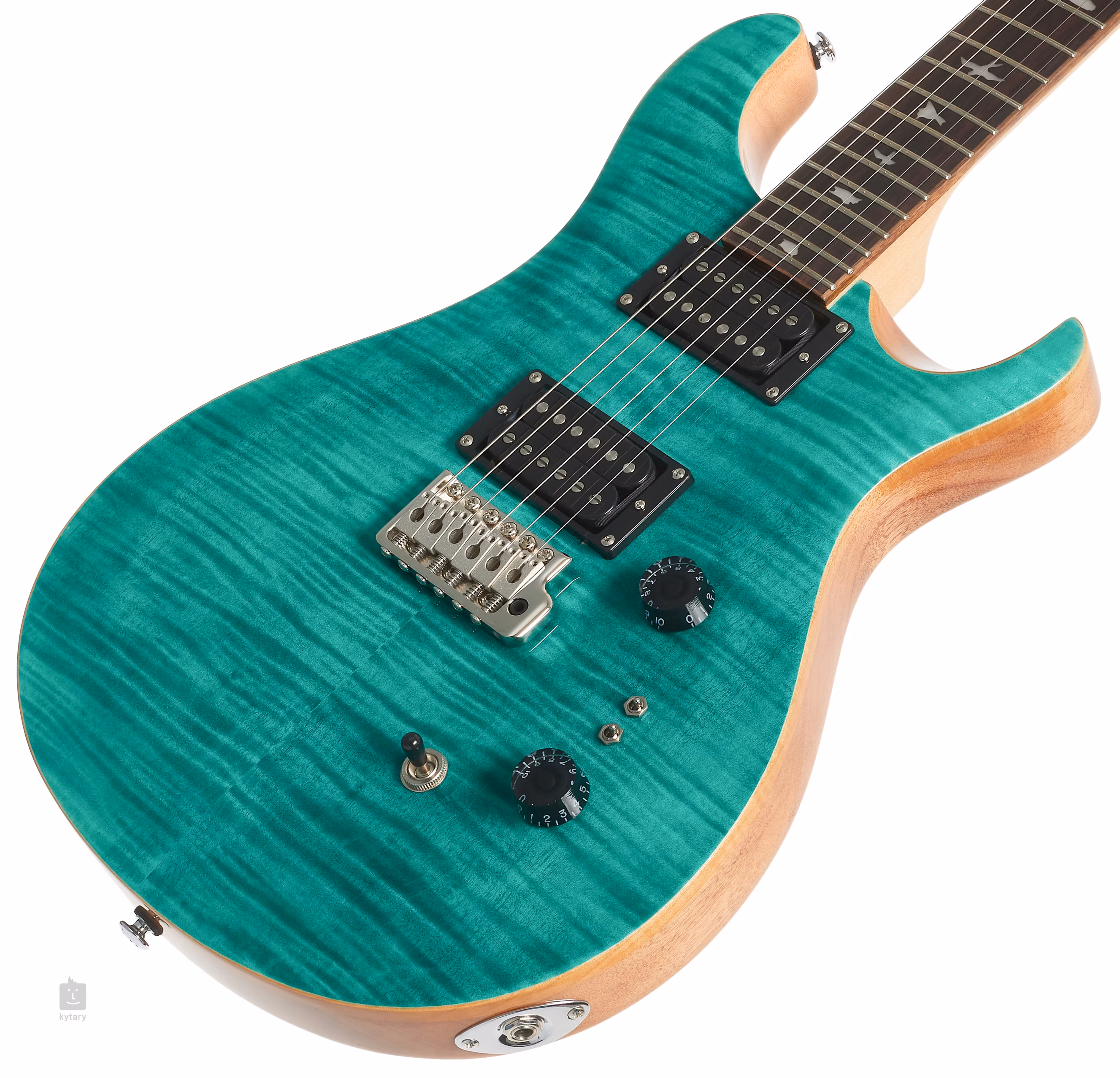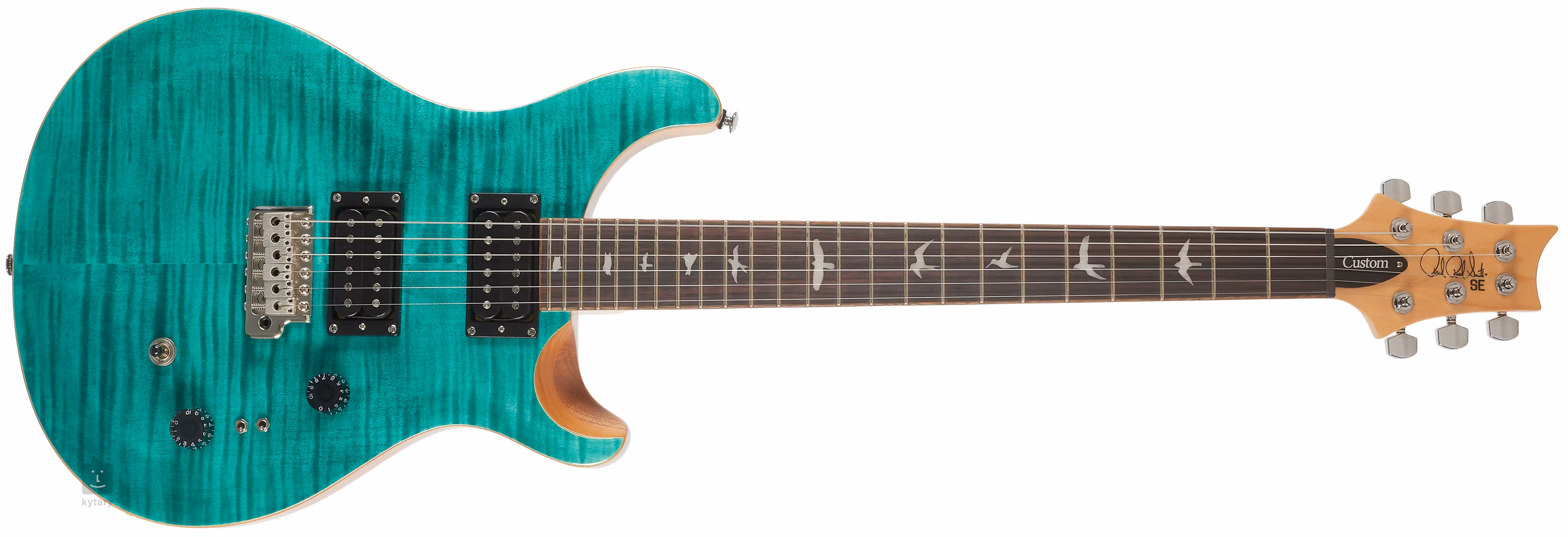 A PRS SE Custom 24-08 elektromos gitár a megfizethetőbb SE sorozatból eredeti PRS testkialakítással, két kivágással és a márka hírnevéhez méltó kivitelezéssel rendelkezik. A standard Custom 24 modellektől az elektronikájukban különböznek, ahol a push/pull hangszínszabályzót két mini coil-tap kapcsoló váltja fel, szélesebb hangbeállítási lehetőségekkel (a névben szereplő 08 a 8 különböző pickup-konfigurációra utal). Az SE Custom 24-08 Turquiose gitár mahagóni testét juharfedel és látványos, fládrovan juharfurnér díszíti. A Shallow Violin carve kivágás minőségében közelíti meg a drágább amerikai Core sorozat modelljeinek játék tulajdonságait. A Wide Thin profilú juhar nyakhoz 24 bundos paliszander fogólap van ragasztva. A fogólapon való orientációt gyöngyház madársziluettek formájú pozíciójelölések segítik. A két gyári humbucker tiszta hangzást biztosít a gitárnak, amely a humbuckerek teljességén kívül két mini coil-tap kapcsolóval a single-coilek ütőerejét vagy a soapbar hangszedők teltebb hangzását is kínálja. A hang karakterét standard vezérlőkkel lehet beállítani. A húrok a szabadalmaztatott PRS tremolóban vannak elhelyezve, a hangolás stabilitását pedig a kiváló minőségű PRS mechanika garantálja. A gitár tokban (gig bag) kerül forgalomba. A Paul Reed Smith műhelyéből származó PRS gitárok az egyik leguniverzálisabb és legmegbízhatóbb hangszerek közé tartoznak. Kiváló hangzásuknak és kényelmes játékuknak köszönhetően olyan zenészek kedvenceivé váltak, mint Santana vagy Mark Tremonti. A márka kínálatában a bevált klasszikusok mellett balkezes modellek, hét húros, bariton és félakusztikus gitárok, valamint híres gitárosok signature modelljei is megtalálhatók. Az SE jelöléssel ellátott hangszerek Indonéziában készülnek. Minőségük miatt azonban nem kell aggódni – a gyártási szabványok és a gondos végső ellenőrzés természetes.