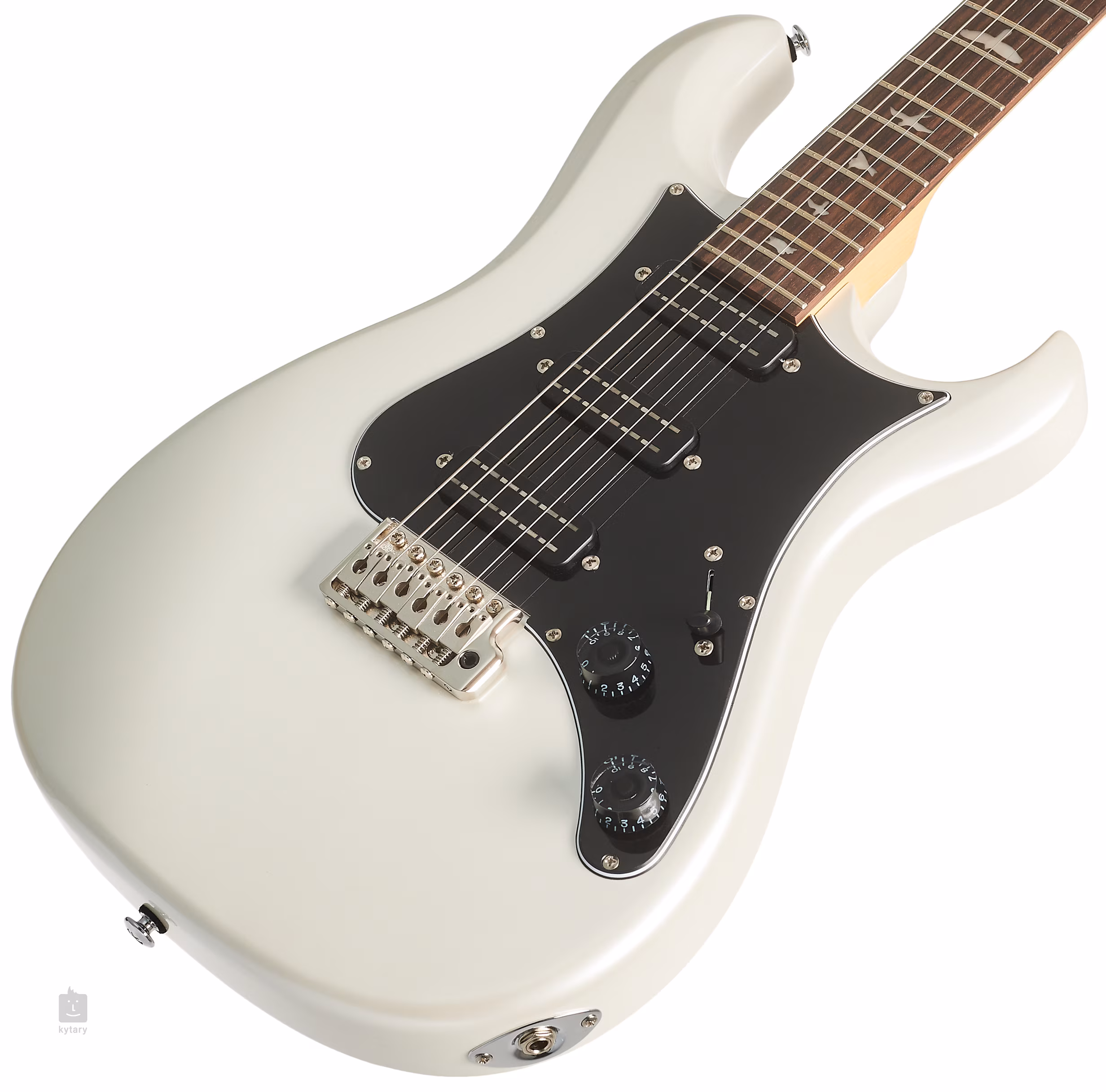 A PRS SE NF3 elektromos gitárok a megfizethetőbb SE sorozatból eredeti PRS testkialakítással, két kivágással és a márka hírnevét igazoló kivitelezéssel rendelkeznek. Hangzásuk sokoldalú és megbízható hangszerek, amelyeket koncertkörutakon és stúdiómunkában egyaránt értékelni fogsz, és olyan műfajokban, mint a rock, pop, funk, blues, country vagy jazz. Az SE NF3 WP - Pearl White gitár teste nyárfából készült. A csavarozott, Wide Thin profilú juharfanyélhez 22 bundos paliszander fogólap van ragasztva. A fogólapon való orientációt gyöngyházas madársziluettek formájában elhelyezett pozíciójelölések segítik. A PRS Narrowfield hangszedők lényegében mini humbuckerek, amelyek minden szabályos humbucker jellemzőjével rendelkeznek, és elsősorban azoknak a gitárosoknak szólnak, akik erős, telített hangzást keresnek, amelynek jellege a single-coil hangszedőkhöz hasonló, de nem tartalmaz zavaró zúgást. A három Narrowfield DD (Deep Dish) „S” hangszedő nagyobb tekercsekkel rendelkezik, amelyek nagyobb huzaltekercselést tesznek lehetővé, valamint extra fémdarabokkal a mágnesek között az erősebb és szilárdabb hangzás érdekében. A hangzás karakterét a szokásos vezérlőkkel lehet beállítani. A húrok PRS hangolókulcsokban és a szabadalmaztatott PRS tremolóban vannak rögzítve. A gitár tokban (gig bag) kerül forgalomba. A Paul Reed Smith műhelyéből származó PRS gitárok az egyik leguniverzálisabb és legmegbízhatóbb hangszerek közé tartoznak. Kiváló hangzásuknak és kényelmes játékuknak köszönhetően olyan zenészek kedvenceivé váltak, mint Santana vagy Mark Tremonti. A márka kínálatában a bevált klasszikusok mellett balkezes modellek, hét húros, bariton és félakusztikus gitárok, valamint híres gitárosok signature modelljei is megtalálhatók. Az SE jelöléssel ellátott hangszerek Indonéziában készülnek. Minőségük miatt azonban nem kell aggódni – a gyártási szabványok és a gondos végső ellenőrzés természetes.