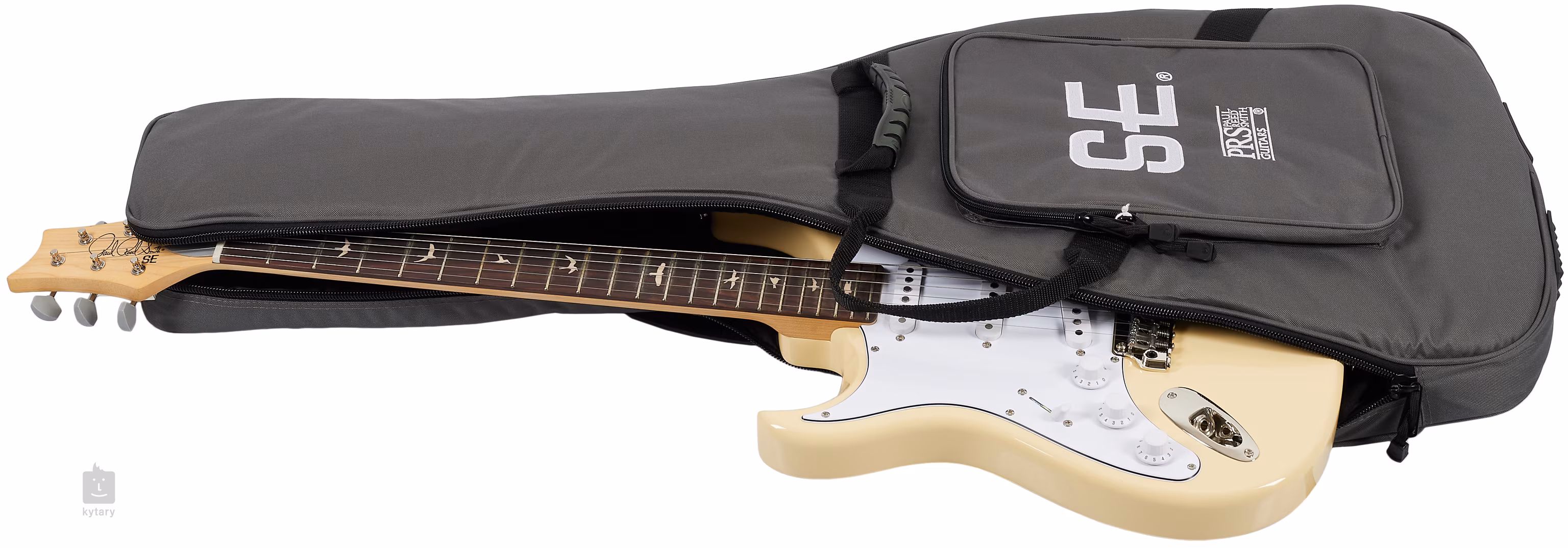 A gitár egy koncert-táskában érkezik.