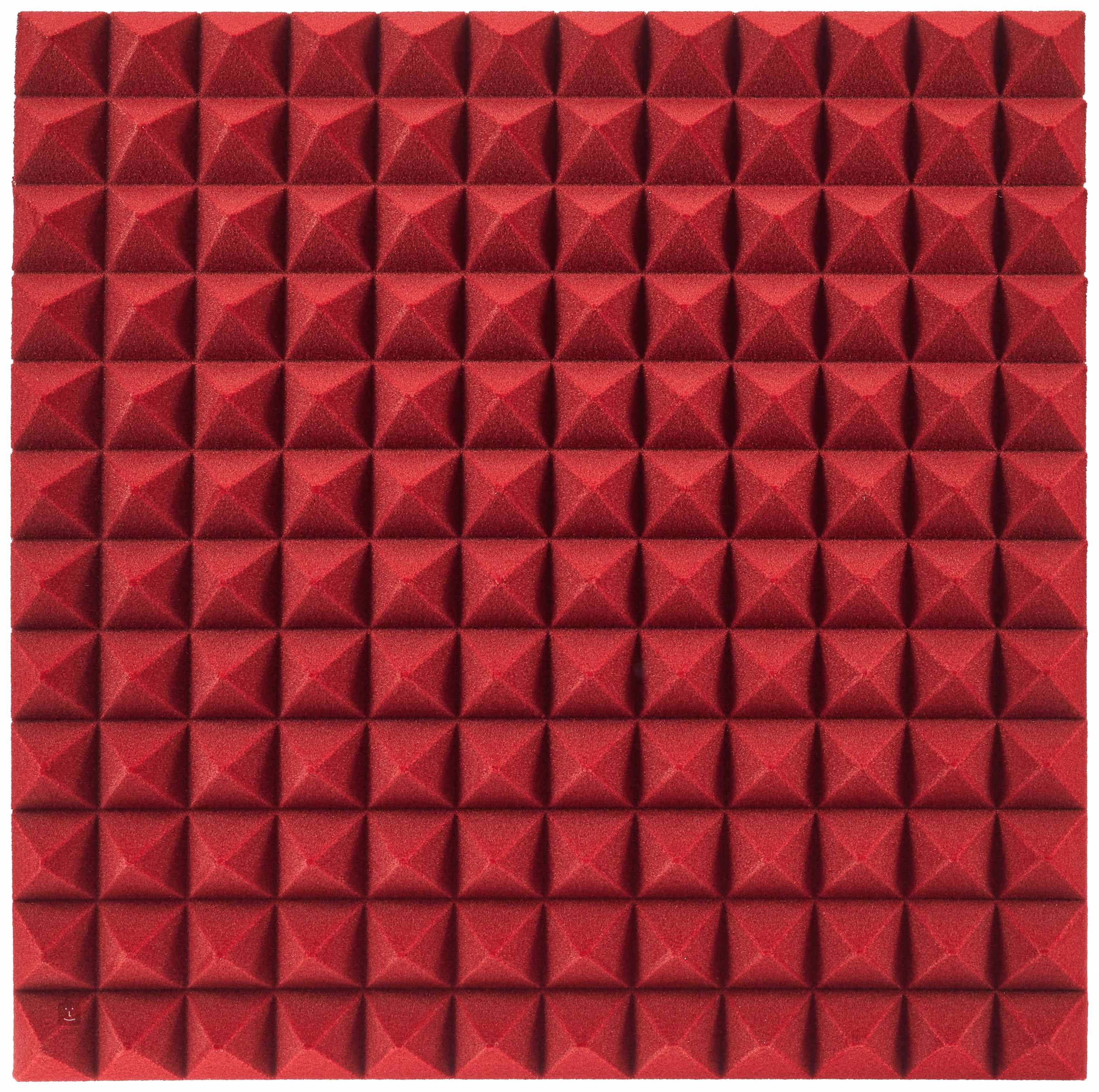 A Pyramid 50mm Cherry akusztikai hab hatékony, ugyanakkor vonzó megoldást kínál a szobaakusztikára 50 x 50 cm-es, tűmintás, 5 cm vastagságú habpanelek formájában. Ez az egyik legnépszerűbb kialakítás, és jól kombinálható egy másik mintázattal nagyobb területeken belül, ha jobb hatást szeretne elérni. Ennek a panelnek az akusztikai abszorpciós hatékonysága különösen a közép- és magasabb frekvenciák csillapításában mutatkozik meg.