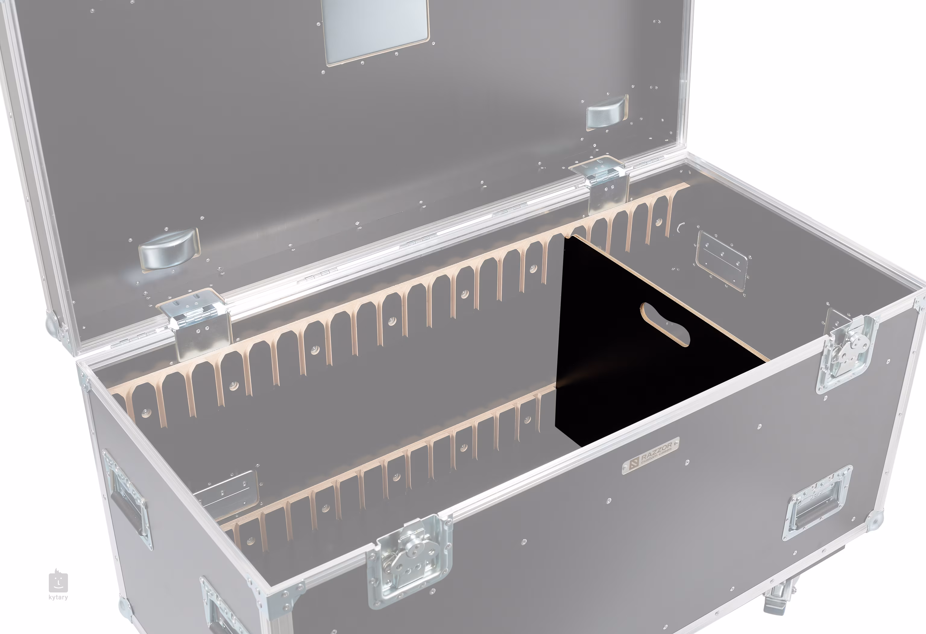 A tok vízálló 9 mm-es rétegelt lemezből készült, és négy görgővel van felszerelve, amelyek közül kettő fékkel rendelkezik. Az egymásra rakható tálcáknak köszönhetően az egyes tokok egymásra rakhatók, így helyet takaríthat meg a tárolás és a szállítás során. Tökéletes megoldás rendezvényügynökségek, hangmérnökök, fénytechnikusok és minden olyan szakember számára, aki tökéletesen rendszerezve és azonnali használatra készen szeretné tartani felszerelését.