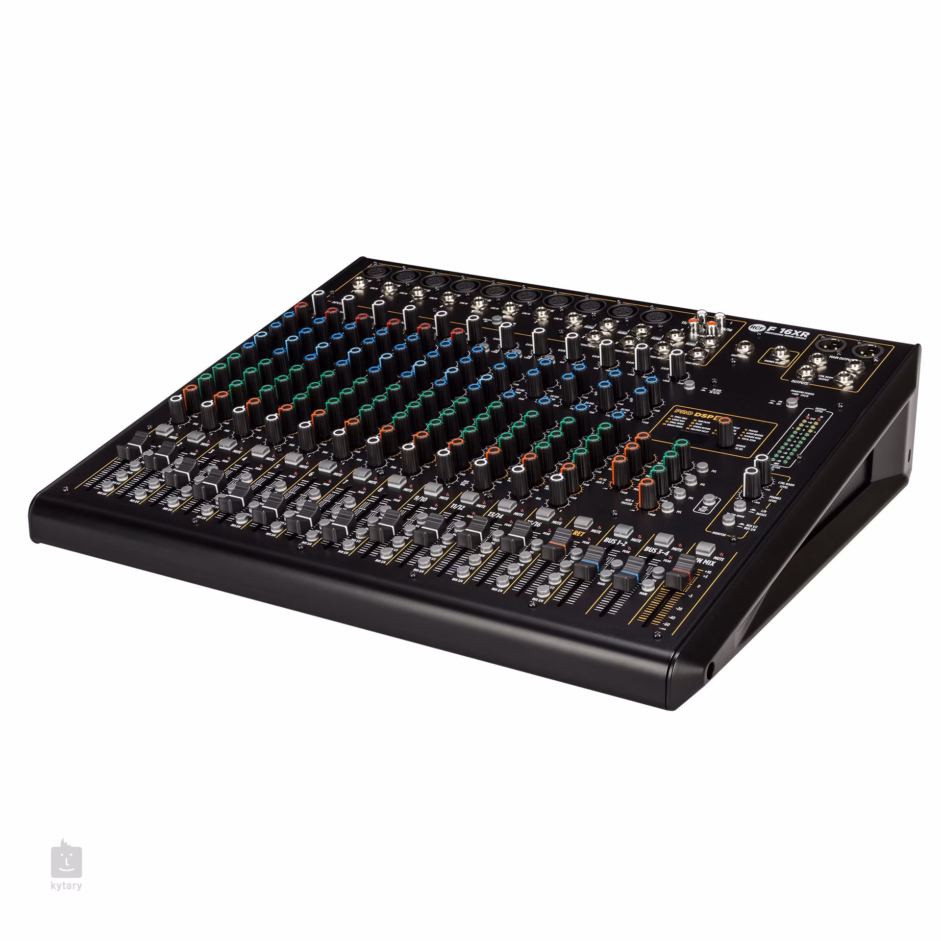 A keverőpulton erősítésszabályozók, kompresszor az 1-6. csatornákhoz, félparametrikus EQ részletes középfrekvencia-beállítással, AUX és FX vezérlők, pan-potenciométerek és reagáló nyomógombok találhatók. Van még egy effekt szekció az effektek menüjéből való kiválasztáshoz, négy busz külön húzósávokkal (Bus 1-2, 3-4) és természetesen a Main Mix.
