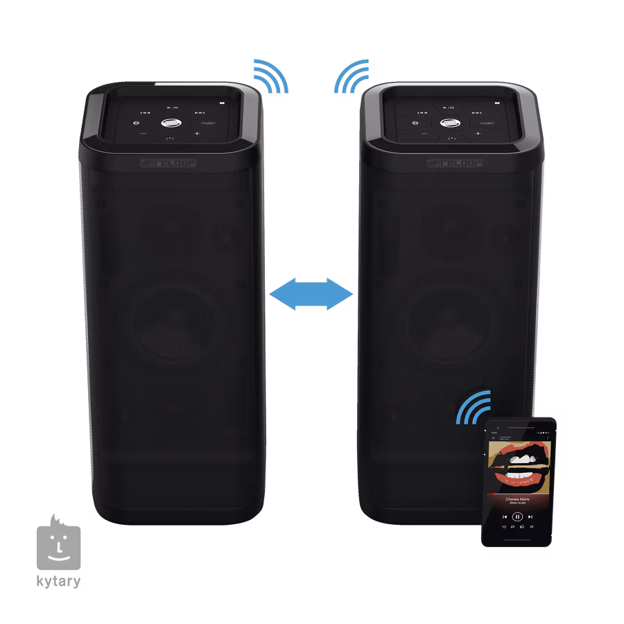 A Reloop Groove Blaster BT hordozható hangszóró nagyszerű teljesítményt, gazdag és kiegyensúlyozott hangzást biztosít, tele masszív basszusokkal és tiszta, torzításmentes magasakkal. A modern dizájn, az intuitív vezérlés és a széles körű felhasználhatóság teszi a hangszórót a szabadtéri kerti partik, esküvői partik vagy születésnapi partik megfelelő társává. A kompakt méret és a kis súly kényelmes és könnyű szállítást biztosít, a robusztus fémrács pedig maximális védelmet nyújt az öt hangszórónak.