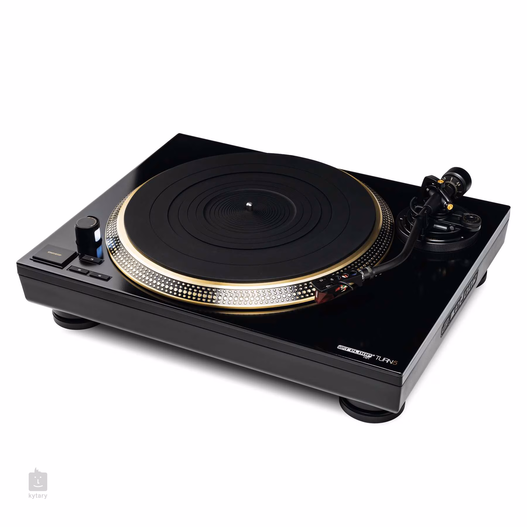 Csak a burkolat karcos, a gramofon új és kicsomagolatlan. A Reloop Turn5 egy hi-fi gramofon, amelyet igényes hallgatóknak szántak, akiknek pontos működést kínál közvetlen meghajtással, kvarcvezérléssel, kézi sebességbeállítással vagy kiegyensúlyozott S-karral VTA-szabályozással és Ortofon 2M Red hangszedővel. Minden gramofon hangzása a lejátszó mechanizmus minőségétől függ. Ebben az esetben a Reloop cég nem hagyott semmit a véletlenre, és a gramofont kefe nélküli, kvarc kristályokkal vezérelt DC motorral szerelte fel. A motort egy robusztus, öntött lemez egészíti ki, amelynek gumialapja és felülete elnyeli az összes rezgést. Ez garantálja a teljesen állandó sebességet és a zökkenőmentes lejátszást. A felső panelen közvetlenül három motorsebesség közül lehet választani – 33 1/3, 45 vagy 78 rpm. A szakértők már sejtik, hogy a Turn5 régi sellaklemezek lejátszására is alkalmas (megfelelő mono rendszerrel; nem tartozék). A statikusan kiegyensúlyozott S alakú kar hidraulikával, anti-skating mechanizmussal és függőleges követési szög beállítási lehetőséggel rendelkezik. A csomagban emellett egy fejrész is található, amelyhez egy kiváló minőségű Ortofon 2M Red hangszedő tartozik, amelynek elliptikus hegye hozzájárul a megfelelő adathordozó rendkívül részletes hangvisszaadásához. Természetesen a precíz kivitelezés, a szerkezetileg védett, aranyozott csatlakozók, a robusztus acélszerkezet, a luxus zongorafényezés és az arany eloxált lemez is alapfelszereltség. Ha stílusos és hangzásában kifinomult lemezjátszót keres, akkor a Reloop Turn5-öt semmiképpen sem szabad kihagynia. A csomag tartalma: gramofon, Ortofon 2M Red hangszedő, súly, porvédő fedél, slipmat, 7" adapter, tápegység, RCA és USB kábel.