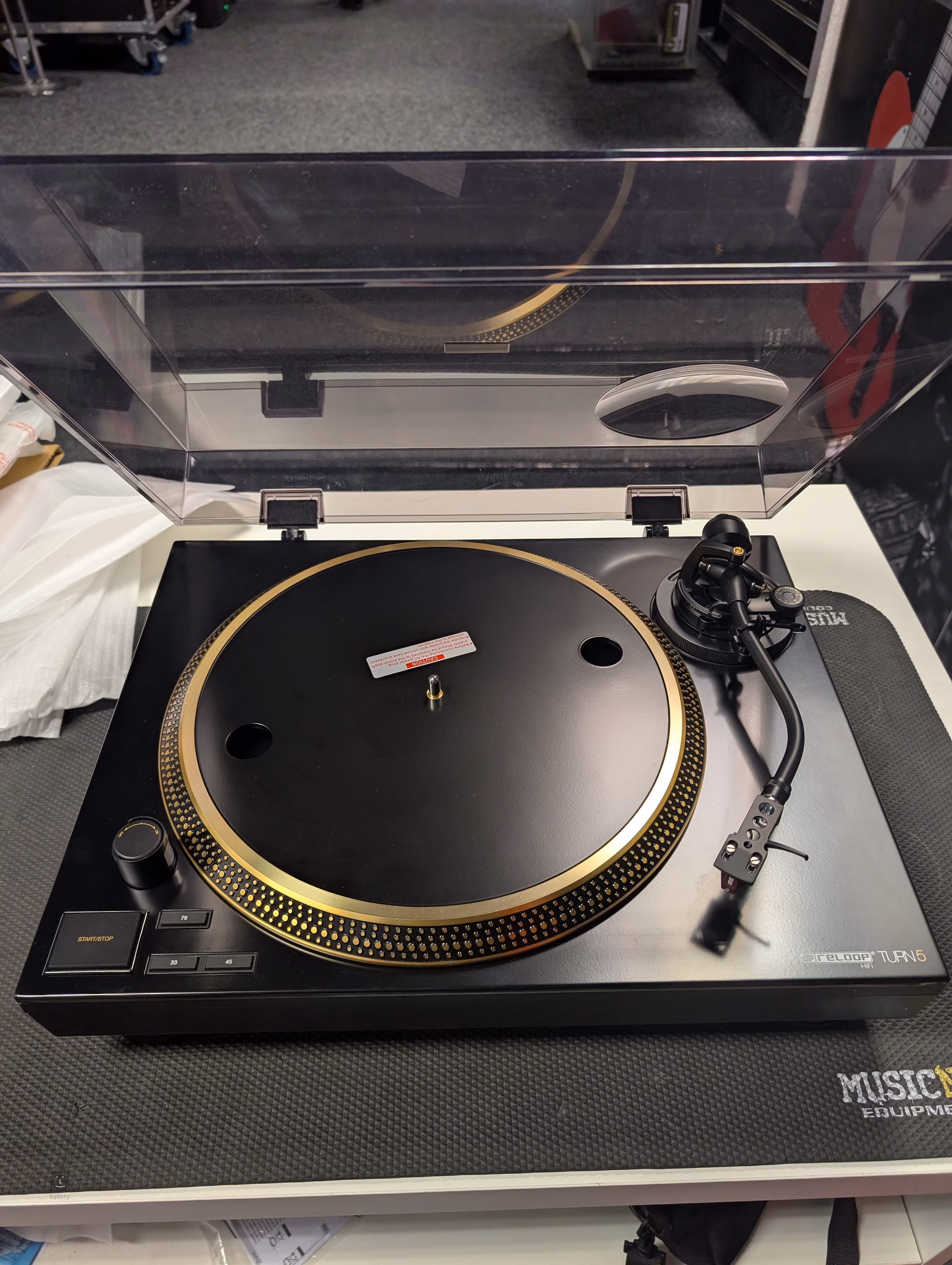 A Reloop Turn5 egy hi-fi lemezjátszó, amelyet igényes hallgatók számára terveztek, és amely pontos működést biztosít közvetlen meghajtással, kvarcvezérléssel, kézi sebességbeállítással vagy kiegyensúlyozott S-karral VTA-szabályozással és Ortofon 2M Red hangszedővel. Minden lemezjátszó hangzása a lejátszó mechanizmus minőségétől függ. Ebben az esetben a Reloop cég nem hagyott semmit a véletlenre, és a lemezjátszót kefe nélküli, kvarc kristályokkal vezérelt DC motorral szerelte fel. A motort egy robusztus, öntött lemez egészíti ki, amelynek alapja és felülete gumiból készült, és elnyeli az összes rezgést. Ez garantálja a teljesen állandó sebességet és a zökkenőmentes lejátszást. A felső panelen közvetlenül három motor sebesség közül lehet választani – 33 1/3, 45 vagy 78 rpm. A szakértők már sejtik, hogy a Turn5 régi szelaklemezek lejátszására is alkalmas (megfelelő mono rendszerrel; nem tartozék). A statikusan kiegyensúlyozott S alakú kar hidraulikával, anti-skating mechanizmussal és függőleges követési szög beállítási lehetőséggel rendelkezik. A csomagban emellett egy fejrész is található, amelyhez egy kiváló minőségű Ortofon 2M Red hangszedő tartozik, amelynek elliptikus hegye hozzájárul a megfelelő adathordozó rendkívül részletes hangvisszaadásához. Természetesen a precíz kivitelezés, a szerkezetileg védett, aranyozott csatlakozók, a robusztus acélszerkezet, a luxus zongora-finis vagy az arany eloxált lemez is része a csomagnak. Ha stílusos és hangzásában kifinomult lemezjátszót keres, akkor a Reloop Turn5-öt semmiképpen sem szabad kihagynia. A csomag tartalma: gramofon, Ortofon 2M Red hangszedő, súly, porvédő burkolat, slipmat, 7" adapter, tápegység, RCA és USB kábel.