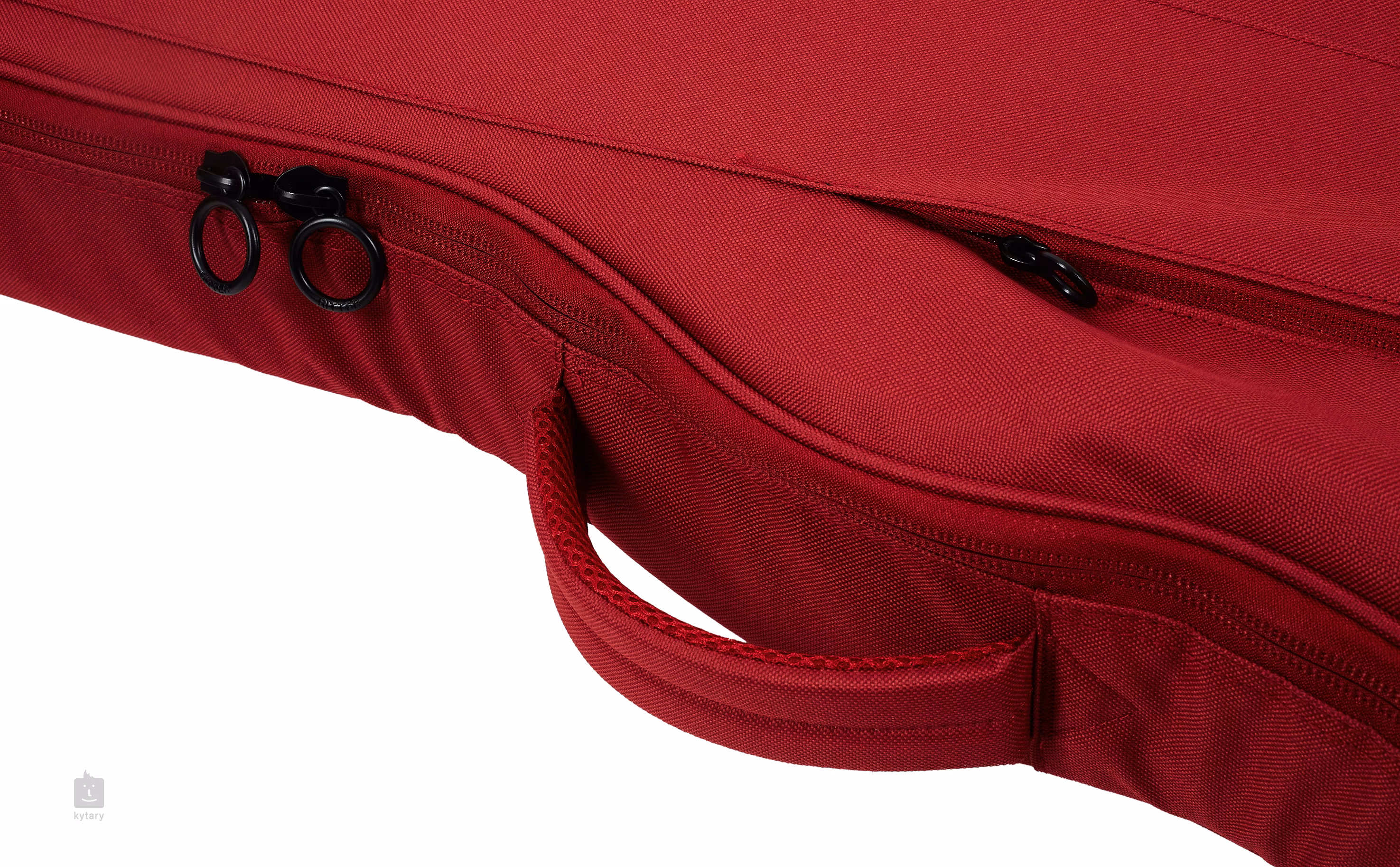 A Carouge sorozat a Ritter termékek között a minőség és az ár tekintetében az arany középutat jelenti. Ez a modell robusztus 20 mm-es párnázottságot biztosít, amely megbízhatóan véd az ütődések és a mechanikai sérülések ellen. A tartós 600D nejlon vízálló réteget biztosít, amely rossz időjárás esetén is biztonságban tartja a szerszámot. A kényelmes hordozáshoz oldalsó fogantyú és két állítható hátpánt áll rendelkezésre. A tágas elülső zsebben bőséges helyet kínál a kottáknak, míg a második, kisebb zsebben kényelmesen tárolhatja egyéb tartozékait. Ez az elegáns piros kivitelű modell Explorer-alakú elektromos gitárokhoz alkalmas. Fényvisszaverő elemekkel van ellátva, így még sötétben is tökéletesen látható leszel.