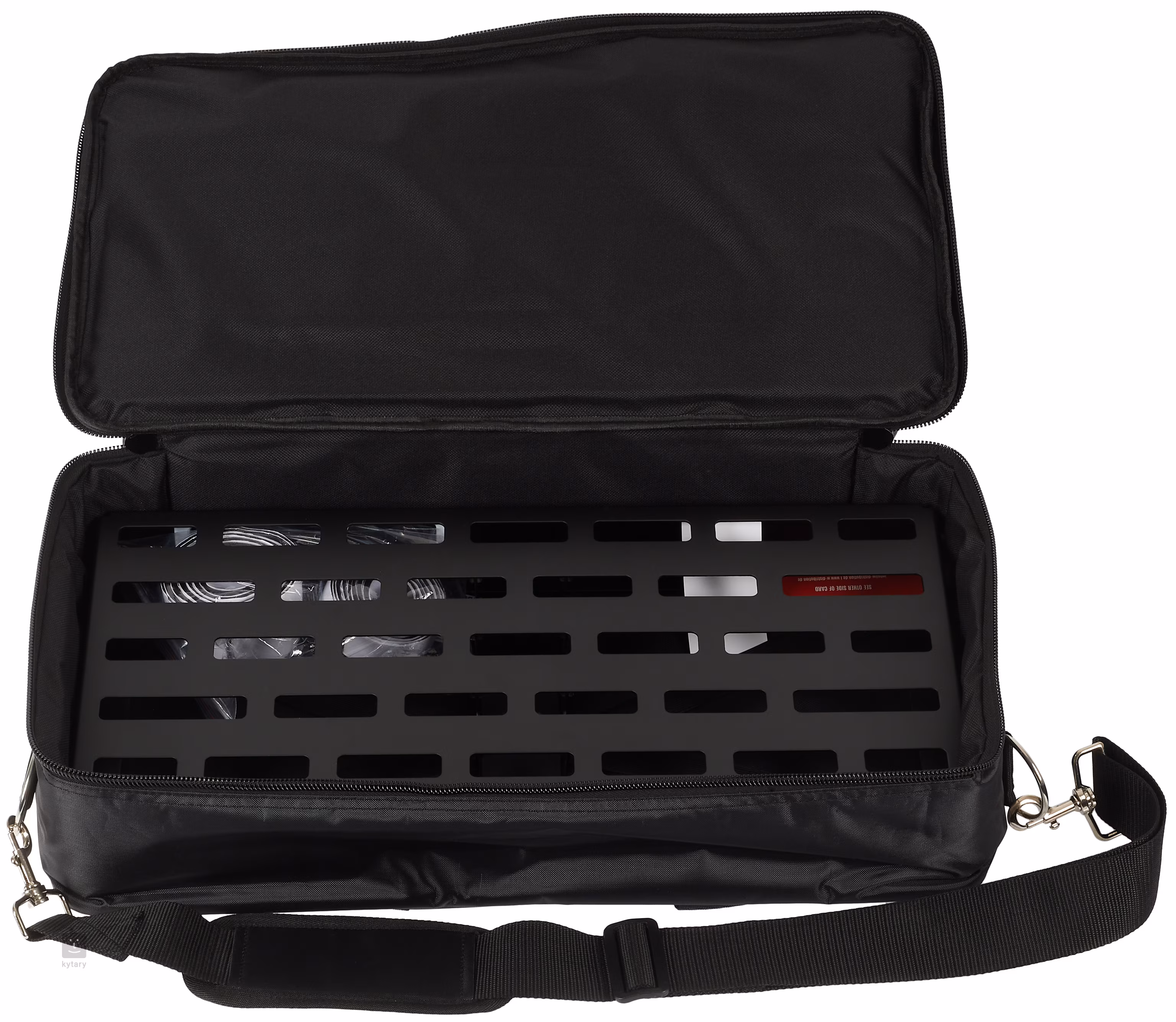 Ehhez a modellhez egy kiváló minőségű párnázott tok jár, és kombinálható a Rockboard The Tray és a Rockboard Frame XL tálcával, hogy bővítse a helyet a pedállap alatti hálózati adapterek tárolására.