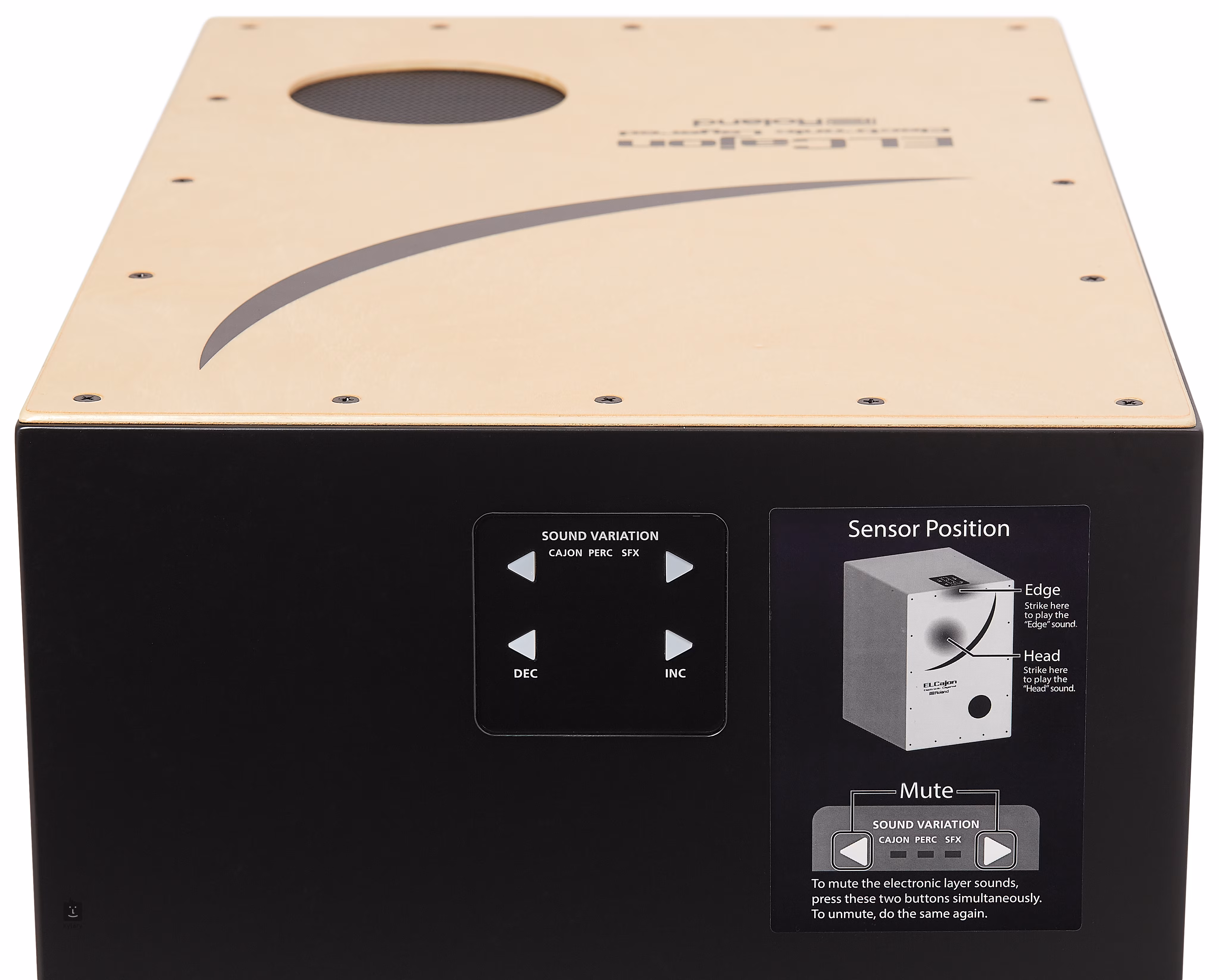 Egy erősítő és egy 3 W-os koaxiális hangszóró található közvetlenül a cajon belsejében, így hangszóró csatlakoztatása nélkül is játszhat. A cajon egy adapterrel vagy hat AA elemmel működtethető, amelyek normál terhelés mellett körülbelül tizenkét órán át tartanak.
