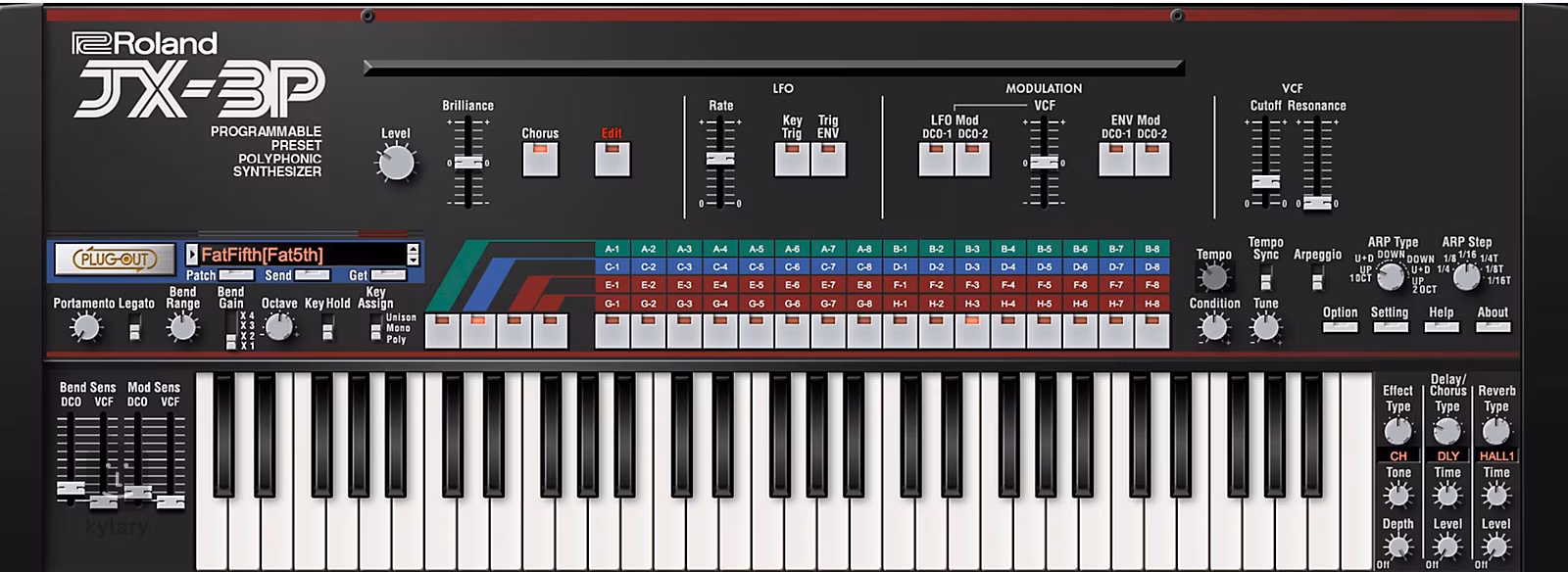 A JX-3P szoftveres szintetizátor az 1983-as JX-3P hathangú modell részletes másolata, beleértve annak alkatrészeit is. Ez a legendás hangszer a digitálisan vezérelt oszcillátorok segítségével a könnyen beállíthatóság és a stabil hangolás korszakát nyitotta meg. A JUPITER-6 mellett ez volt az első Roland szintetizátor, amely MIDI-vel rendelkezett. A JX-3P szoftveres szintetizátor megkülönböztethetetlen az eredeti hangzásától, így a Roland híres analóg hangzását az 1980-as évekből hozza el a kreatív folyamatokba.